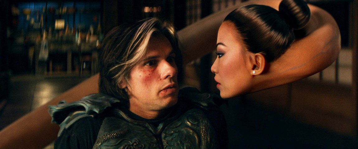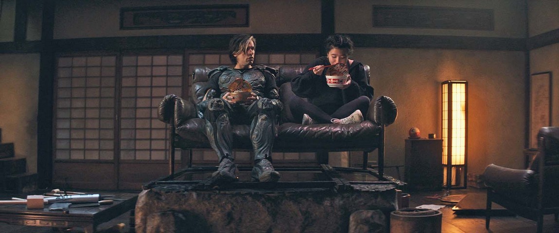 L'armure, ça a été un vrai casse-tête. Déjà, elle sort de la tête de David. Il l'a pensée à travers des dizaines de pièces qu’il connaît par cœur. Il a dessiné chaque yokaï sur l'armure et a ensuite travaillé la bonne forme avec l’équipe d’Olivier Afonso. Le problème c’est que quand tu regardes Les Chevaliers du Zodiaque, c'est cool, mais les armures, dans la vraie vie, jamais tu peux marcher avec. (rires) J’avais deux heures de préparation pour l’enfiler chaque jour et j’avoue qu’à la fin je n’en pouvais plus (rires). Et ça a pas mal compliqué les scènes d’action, vu que l’armure pouvait empêcher les mouvements. Comme une combinaison de plongée. Donc au final, ça collait bien avec l’idée du héros qui en avait marre d’être dans une armure.