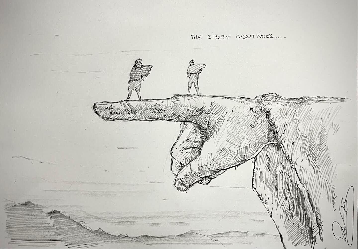 Lucasfilm vient de confirmer que la saison 2 d'AHSOKA est en cours de développement, sous la direction de Dave Filoni, et a partagé cette toute première illustration préparatoire où Ahsoka et sa padawan Sabine Wren se tiennent sur la main de la statue géante du "père des dieux Mortis".