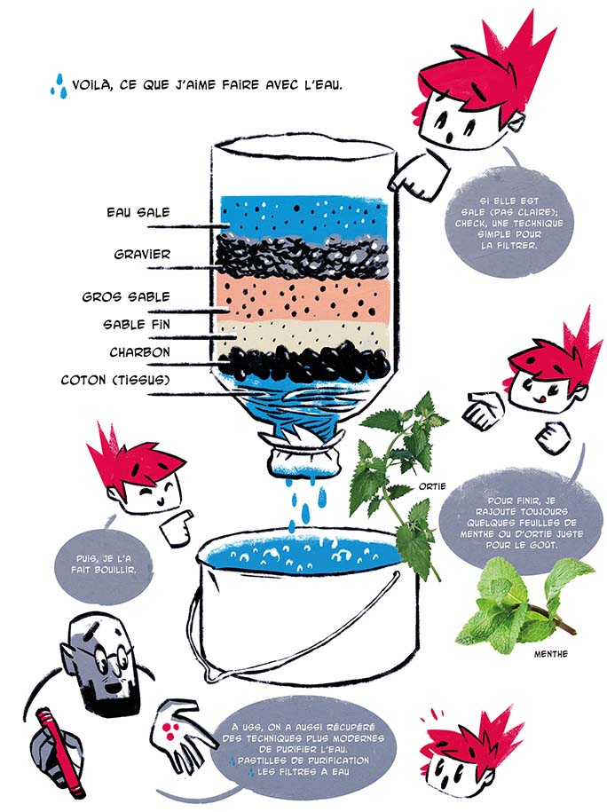 "Christian Ung fait une entrée fracassante dans le catalogue Glénat avec ce roman graphique singulier tant par son style graphique inspiré du street art et de l’animation que par son scénario haletant qui nous entraîne dans une aventure survoltée digne d’un thriller survivaliste. Tout au long du récit, Denis et Nadia Tribaudeau, véritables experts en matière de survie, délivrent de précieux conseils et astuces. De quoi apprendre les techniques de bases de ce mouvement et terminer l’ouvrage en étant plus aguerri !