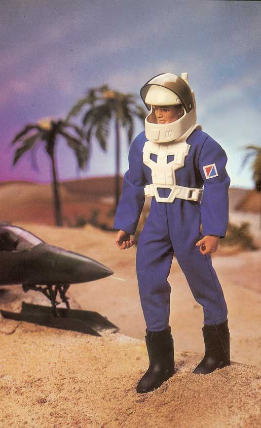 Et toujours et encore dans la gamme Espace, une curiosité issue du catalogue Mattel italien de 1986, avec un Big Jim Pilote, devant un engin spatial...qui ne fait pas partie des astronefs Mattel !