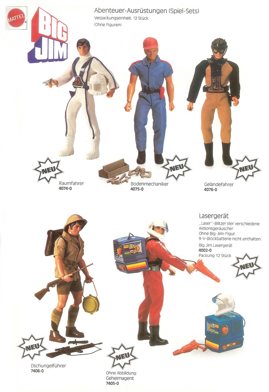 Pendant ce temps, en Allemagne (comme le montre cette image), en France, en Italie et en Espagne, le succès de Big Jim ne se démentait pas et s'amplifiait même, car les responsables locaux de Mattel continuaient à commercialiser les gammes précédentes, tout en lançant de nouvelles gammes qui correspondaient à leur marché local.
