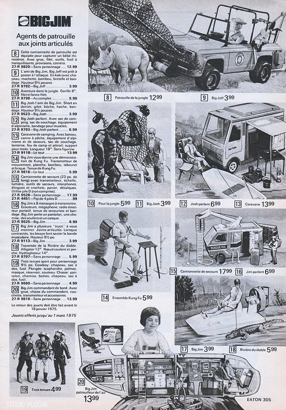 Une page Big Jim d'un autre catalogue canadien de 1974, "Eaton" cette fois-ci, toujours via le blog "Studio Pluche" :