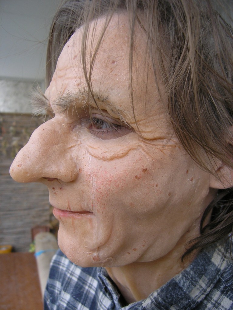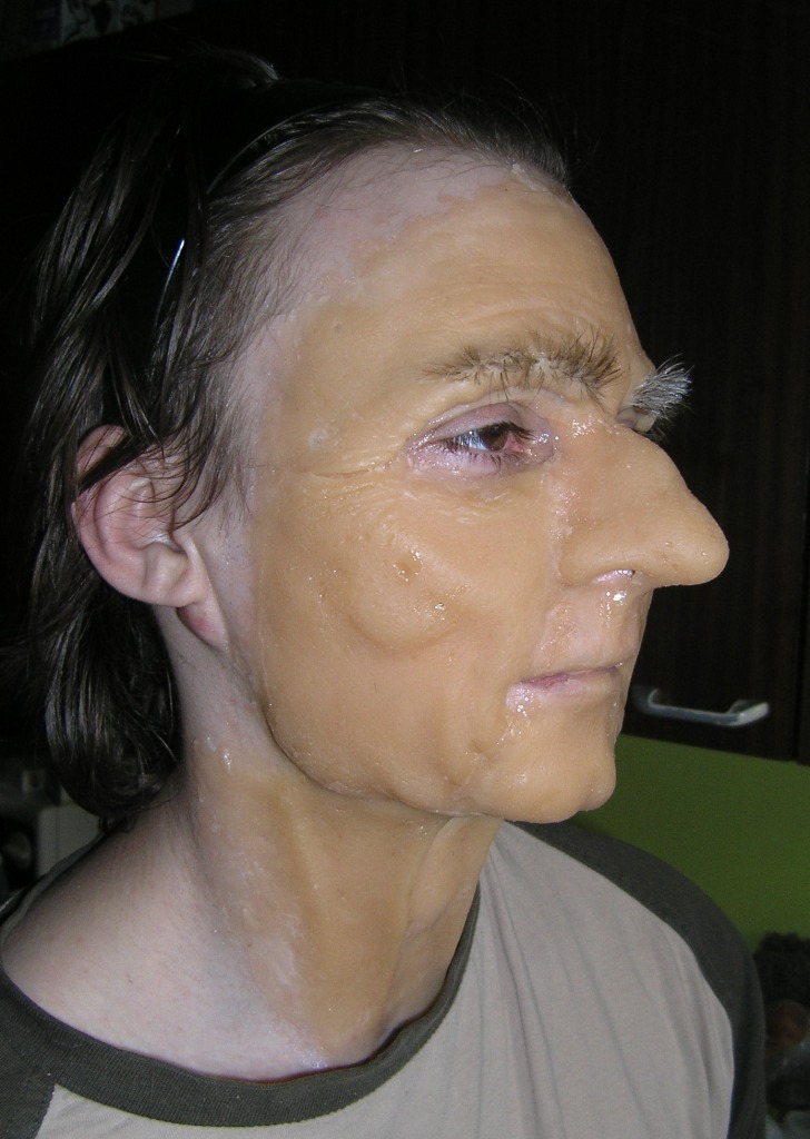 Bah c'est pas mal pour une première! :) Par contre si je peux me permettre, fais attention à tes raccords surtout au niveau des yeux. La "bordure" de ta prothèse est trop visible ainsi que la différence de couleur. Mais tu tiens le bon bout ! :)