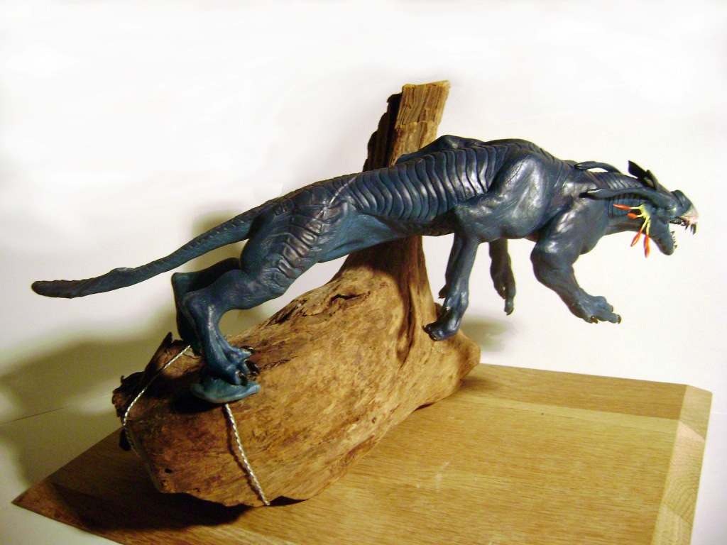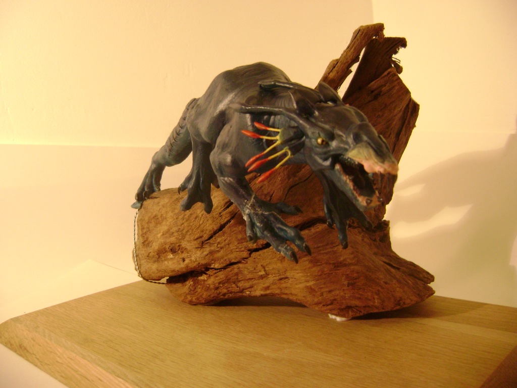 La magnifique bête fini et peinte. Malheureusement il est tombé, pas de haut, mais tombé quand même. Conclusion, une pâte et la queue de cassé. J'ai réparé les dommage, mais le mal est fait, il est pas aussi bien qu'avant. Heureusement les photos ont été prise avant la chute. Vous pourrez le voir dans toute sa beauté !