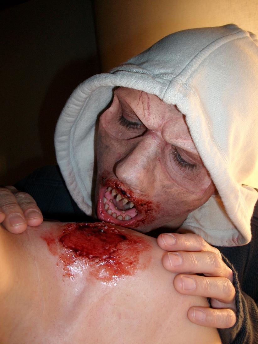 Alors je ne peux pas en dire trop car le tournage ne s'est pas effectué, mais c'est un acteur porno trach, un peu mutant, qui "dévore ses partenaires. Je mettrai en ligne les photos du maquillage finale après le tournage.