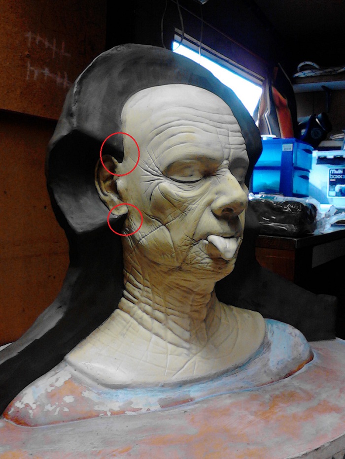 Sculpture en plastiline ivoire dureté 70, pénible au départ car c'est véritablement dur même légèrement chauffée, mais avec cette dureté le montage du plan joint ne laisse pas de trace même sur les textures.