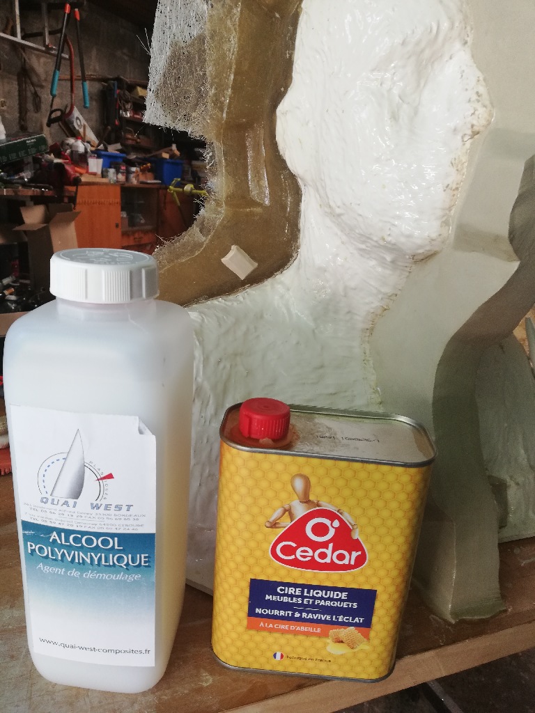 A ce moment de la fabrication, c'est toujours 2 couches d'alcool et deux couches de cire. Mais avec le gel-coat, j'ai un mal de chien à faire adhérer le gel sur les surfaces cirées !!! Ça glisse et ça coule !!!