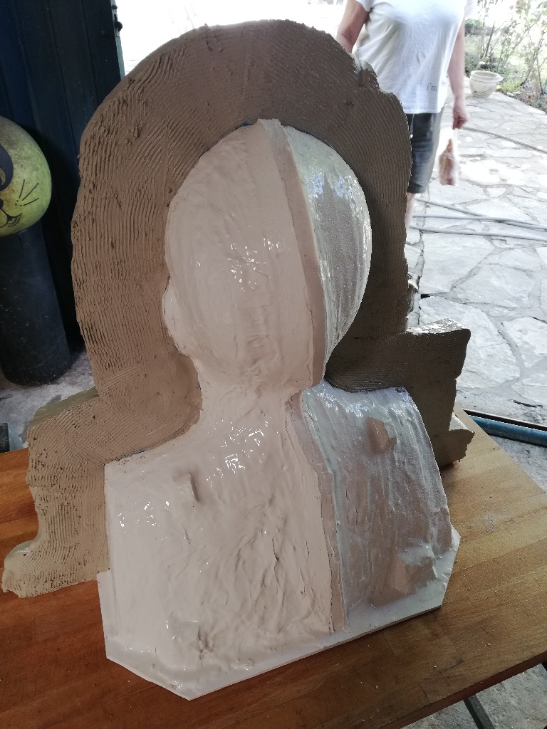 Je viens de tester un moule grandeur nature d'un buste afin de faire un support de modelage pour de futures créatures.