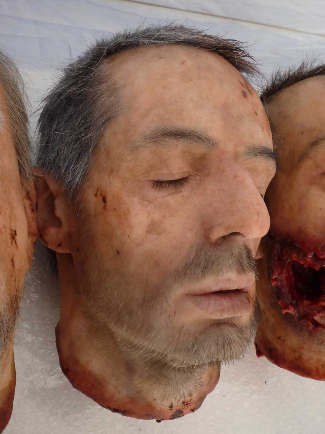 ...allez ça manque des habituelles têtes tranchées tout ça ! (retrouvées après quelques jours donc pas très fraiches...) :twisted: En voici deux réalisées pour un film à venir. Il y avait 7 fausses têtes en tout !!