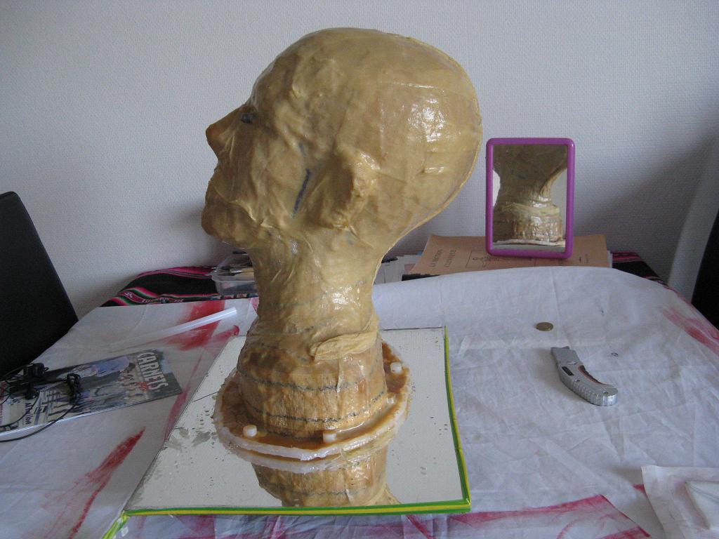 en cours de moulage avec du latex renforcé de compresses et de bandes,