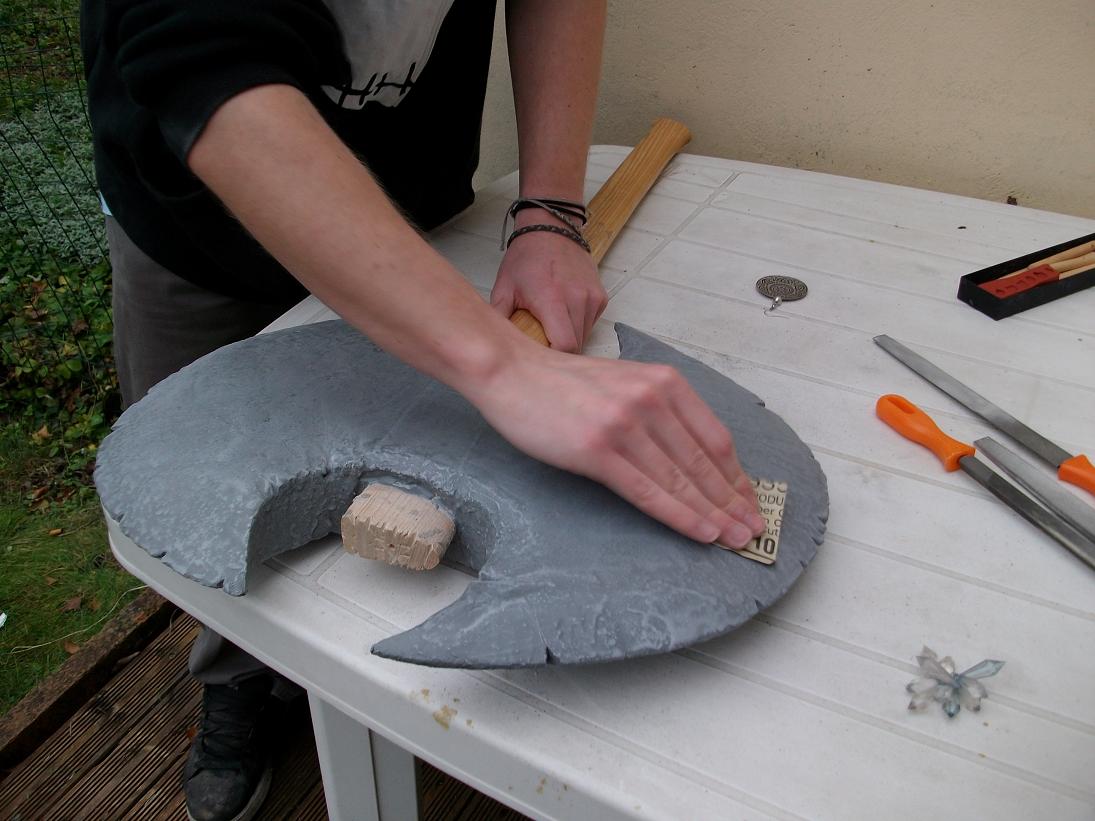 Cool!! Ca marche bien! Si tu veux que la cognée de la hache tienne mieux au manche, tu peux mettre quelques clous "rustiques" à têtes pyramidales.