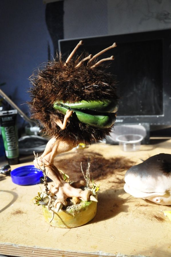 coucou a tous je vous présente sprat une chimère entre dino-poulet grenouille écureuil et escargot fait à partir des concepts d'une amie