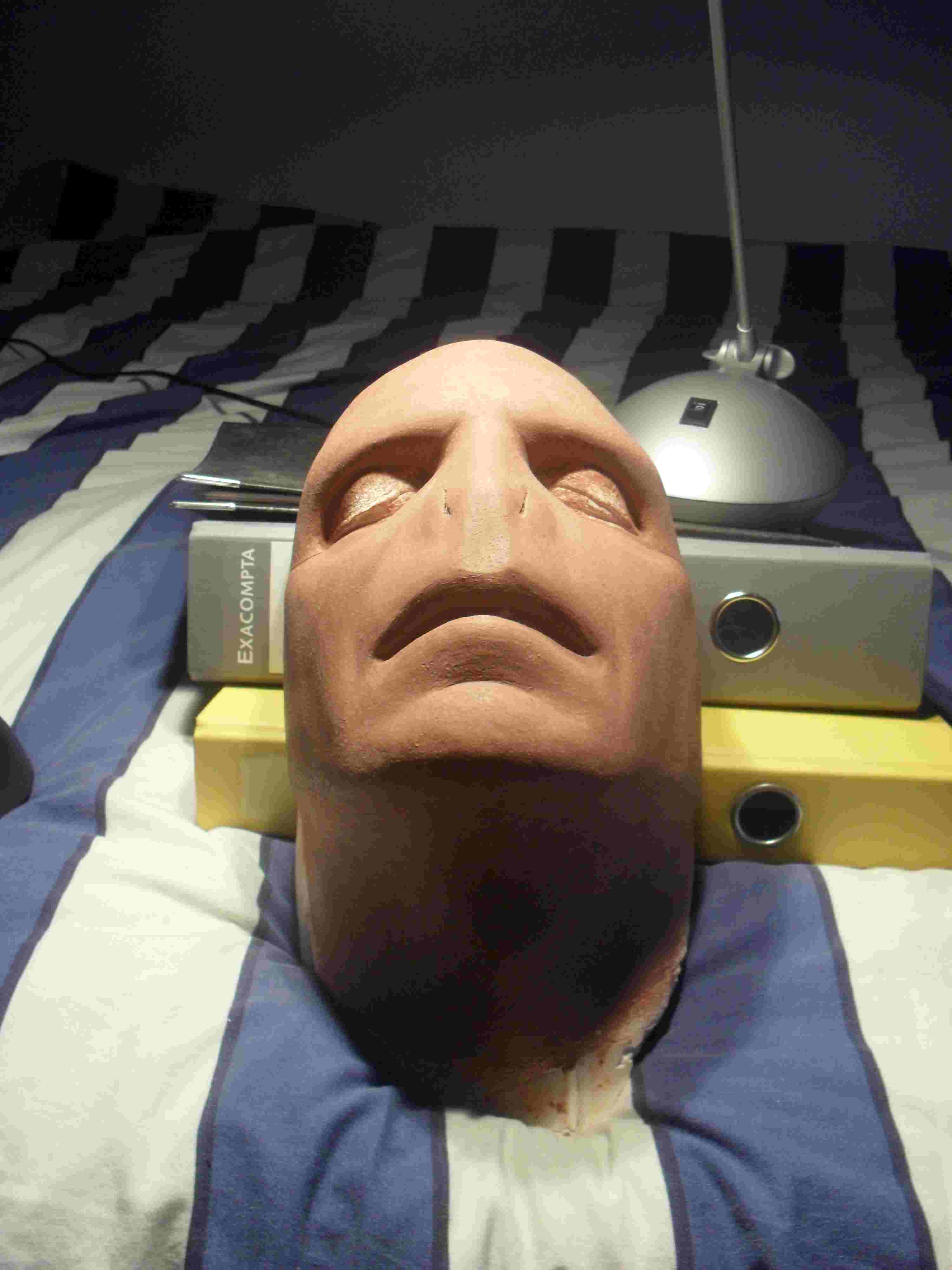 Je ne suis pas très content de mes raccords , je n'ai pas réussis à encapsuler correctement le silicone et j'ai aussi eu un petit problème avec le moule : le visage en plâtre du comédien ayant été réalisé avec un plâtre de grande surface tandis que pour l'autre j'ai utilisé du crystacast de chez formfx .