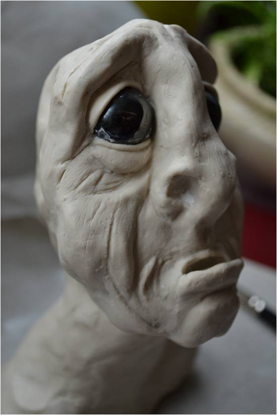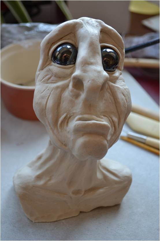 on fait tous ce genre de sculpture quand on commence, il faut travailler les volumes longtemps avant de se mettre aux textures, par contre il a une expression terrible il est trop chou et ça c'est un super début continue :)