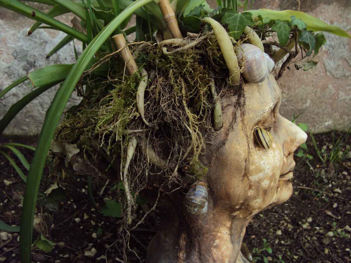 j'ai scié le crâne fait quelques trous pour les racines, les plantes font le reste