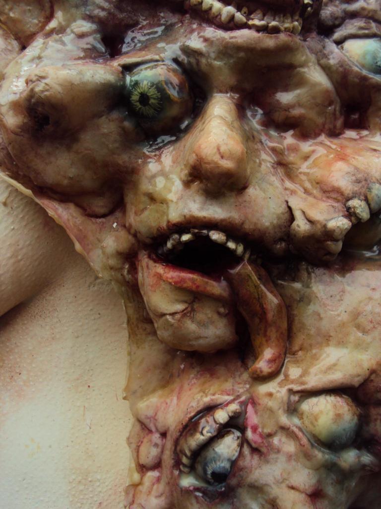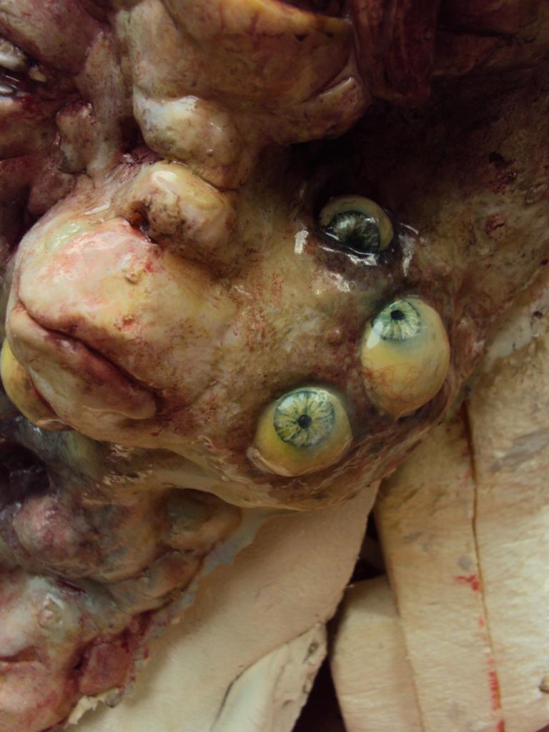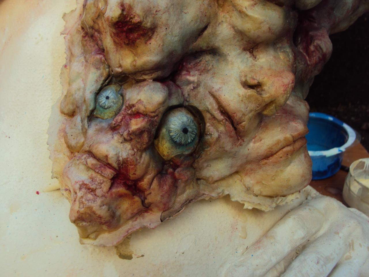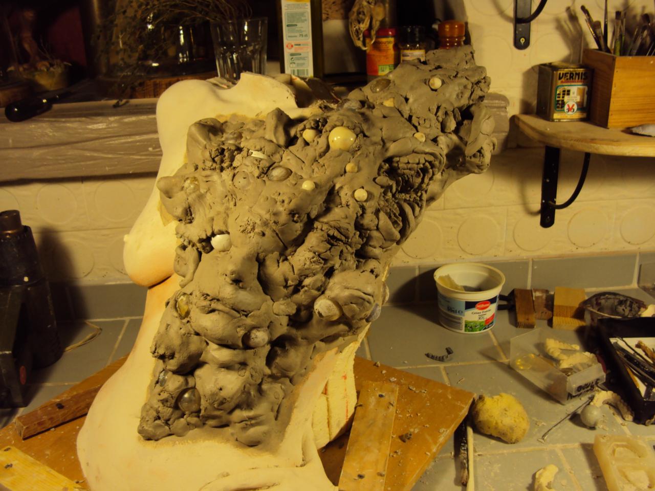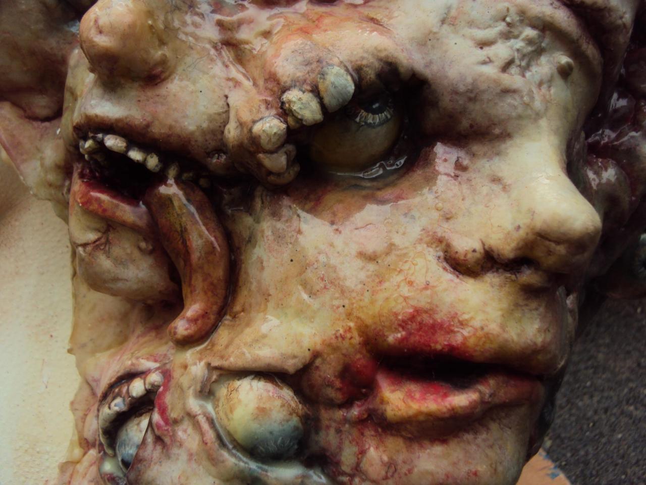 voivi un blob que je voulais faire vite fait pour la zombie walk de strasbourg (commencé 2 jour avant), je voulais torcher un truc vite fait avec ce que j'avais, j'ai donc pris plein de moules qui traine chez moi (visage et dents) j'ai écrasé de l'argile dedans j'ai posé plein de truc et ça a donné ça, j'ai même pas pris le temps de faire des textures juste lier le tout j'ai du mettre 5h a faire la "sculpture"