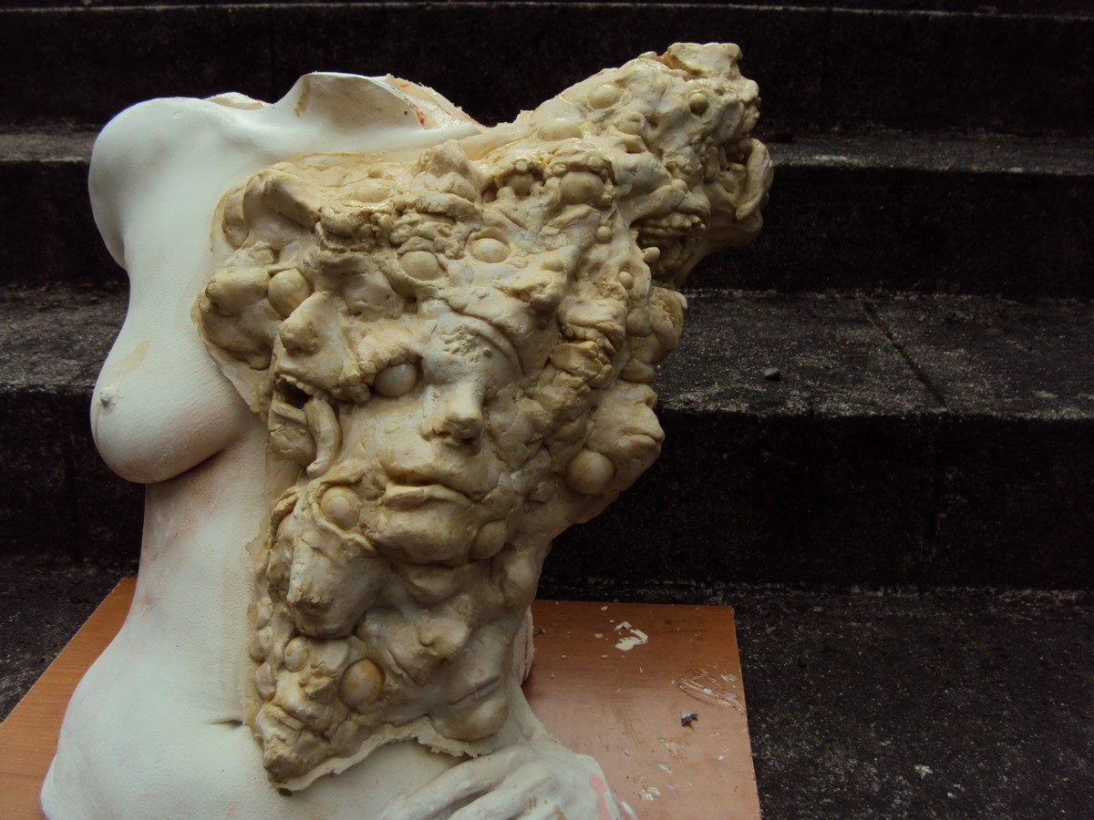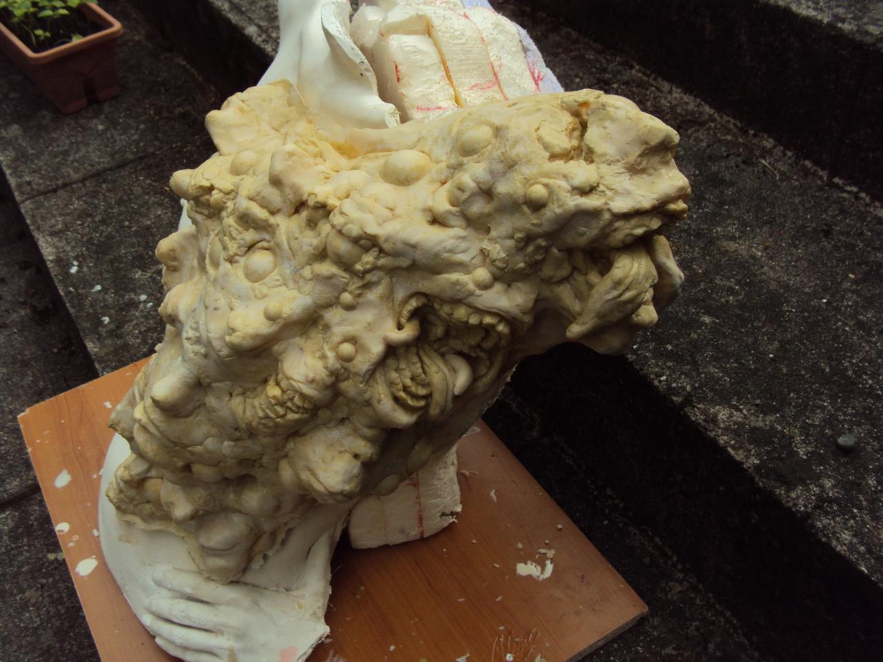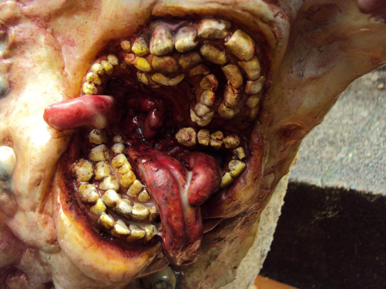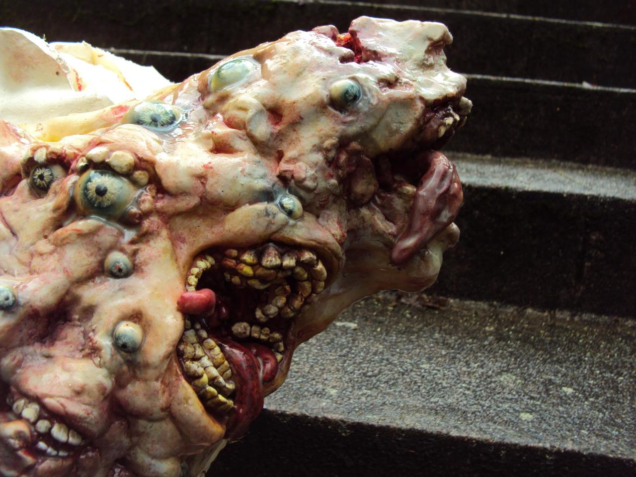 voivi un blob que je voulais faire vite fait pour la zombie walk de strasbourg (commencé 2 jour avant), je voulais torcher un truc vite fait avec ce que j'avais, j'ai donc pris plein de moules qui traine chez moi (visage et dents) j'ai écrasé de l'argile dedans j'ai posé plein de truc et ça a donné ça, j'ai même pas pris le temps de faire des textures juste lier le tout j'ai du mettre 5h a faire la "sculpture"