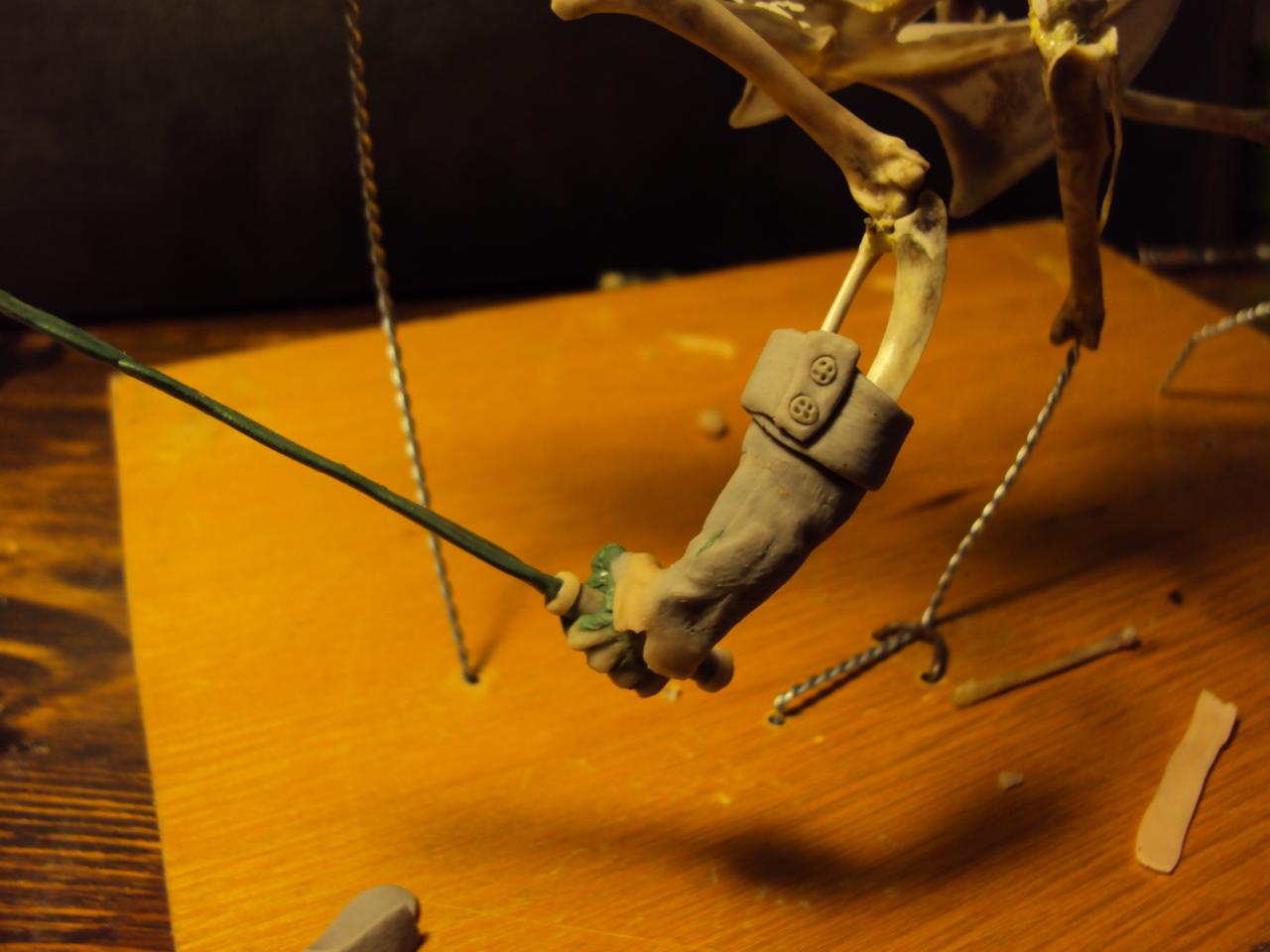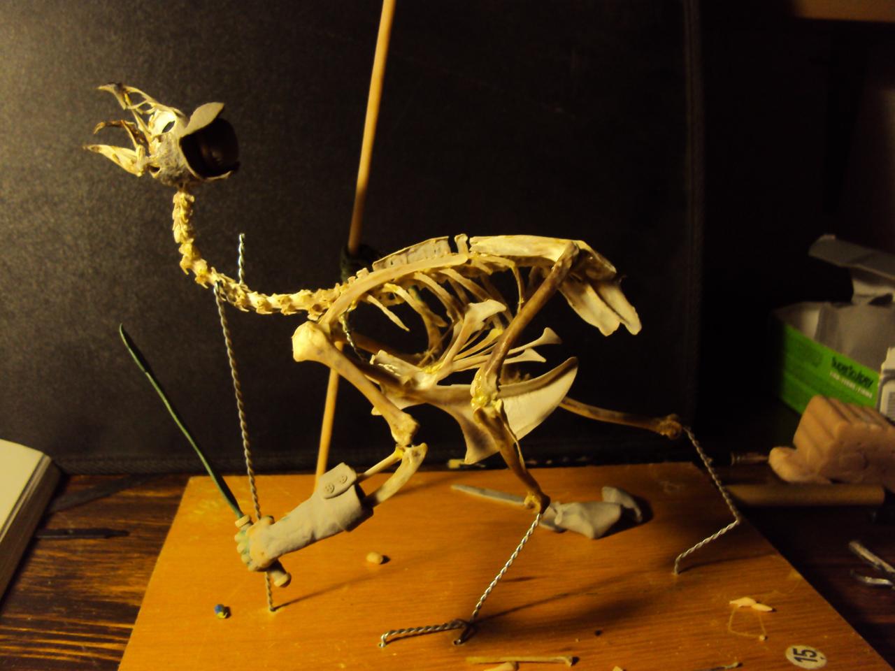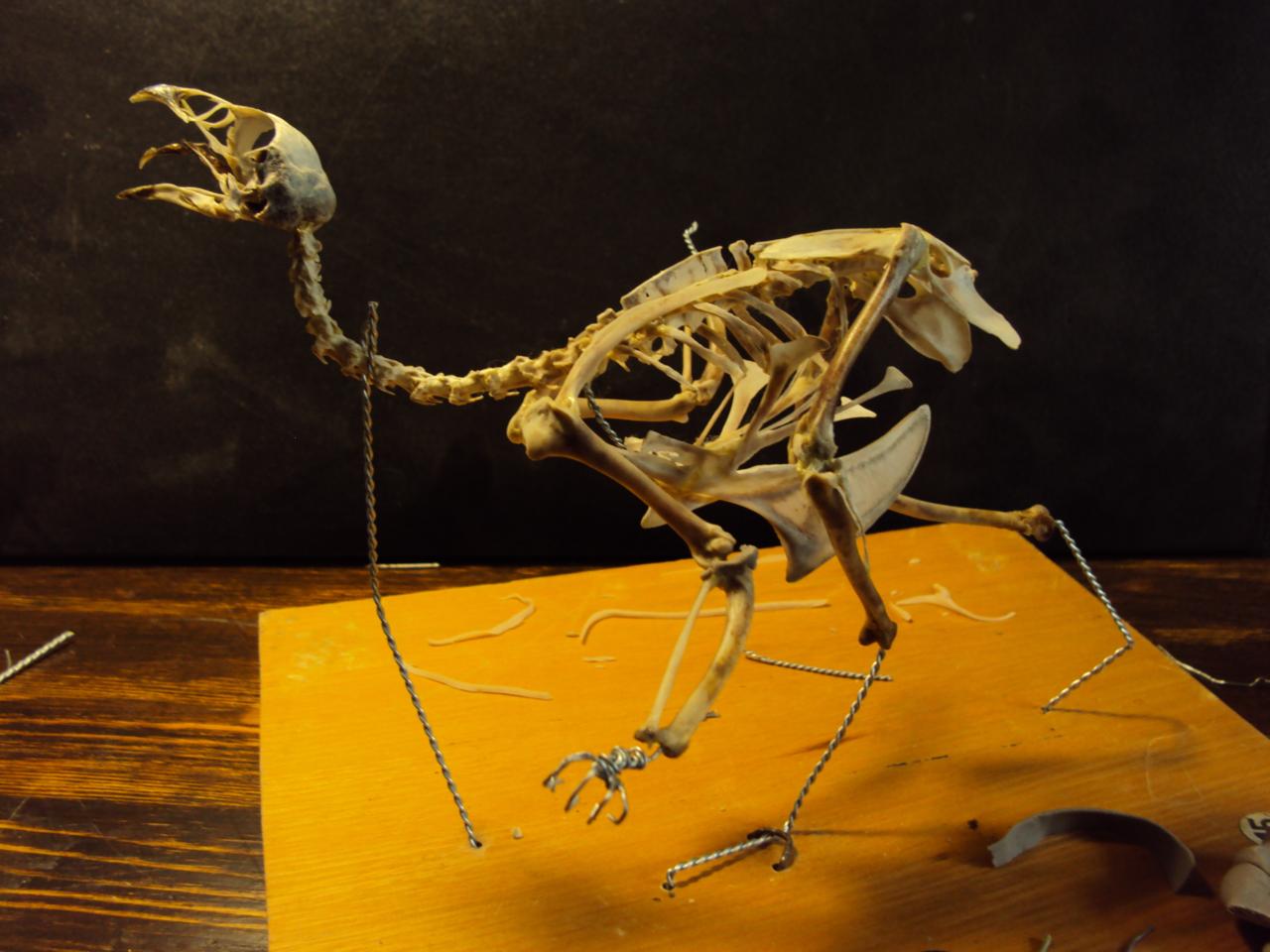 Je m'amuse beaucoup avec les squelettes en ce moment, ici c'est une caille (que j'ai mangé au passage) nettoyée et remontée, et je lui fais des bras et des jambes, (les vrais sont généralement coupées quand on en achète sur le marché)