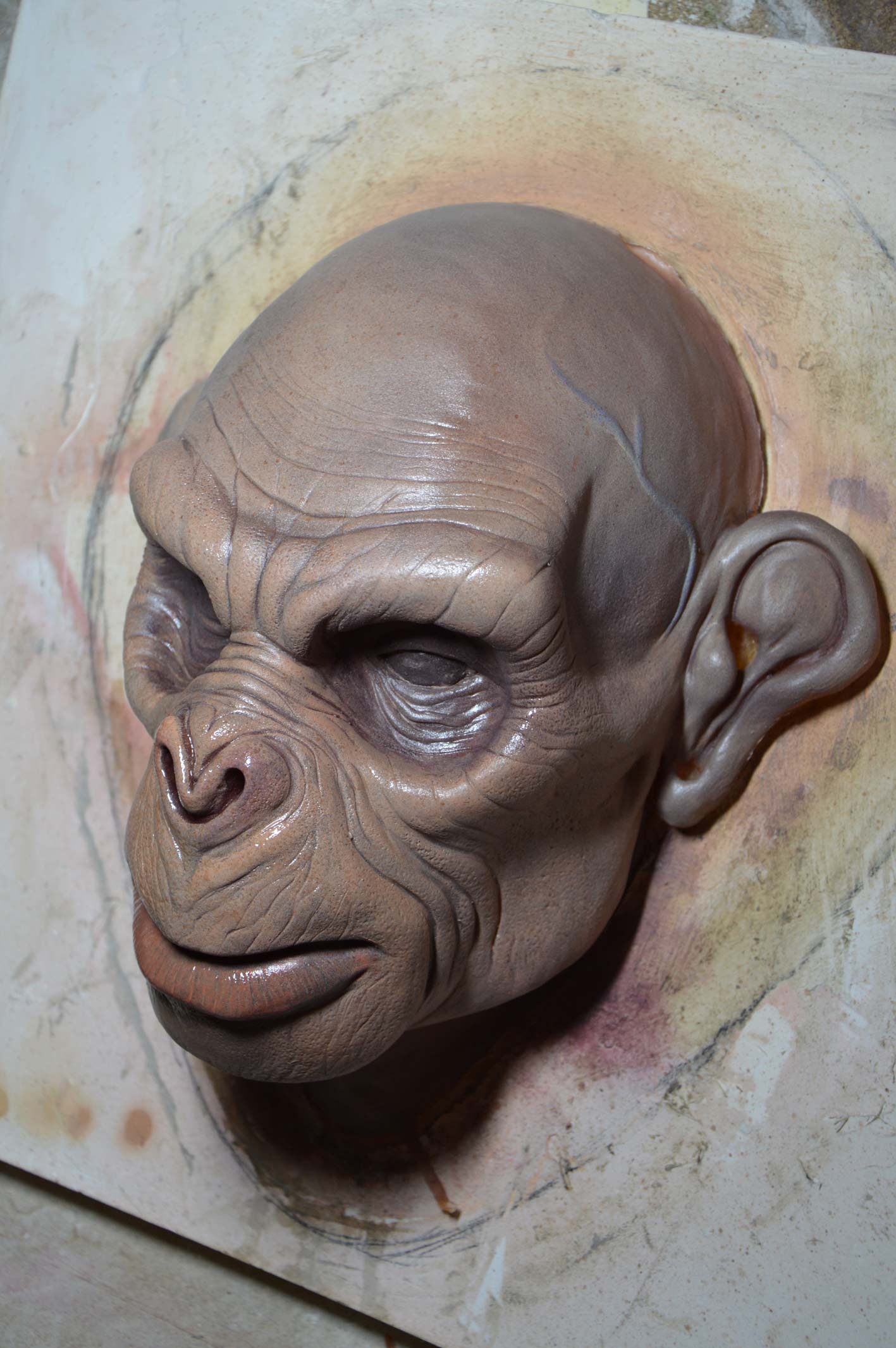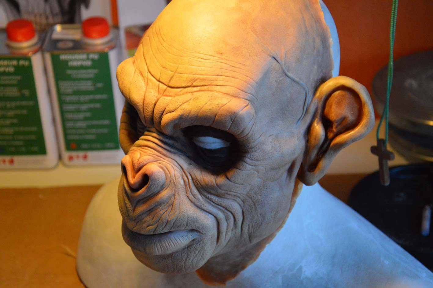 Comme nouveau masque, j'ai eu envie de m'attaquer à nouveau à un singe. Sculpture toujours en wed clay et tirage prévu à nouveau en latex.