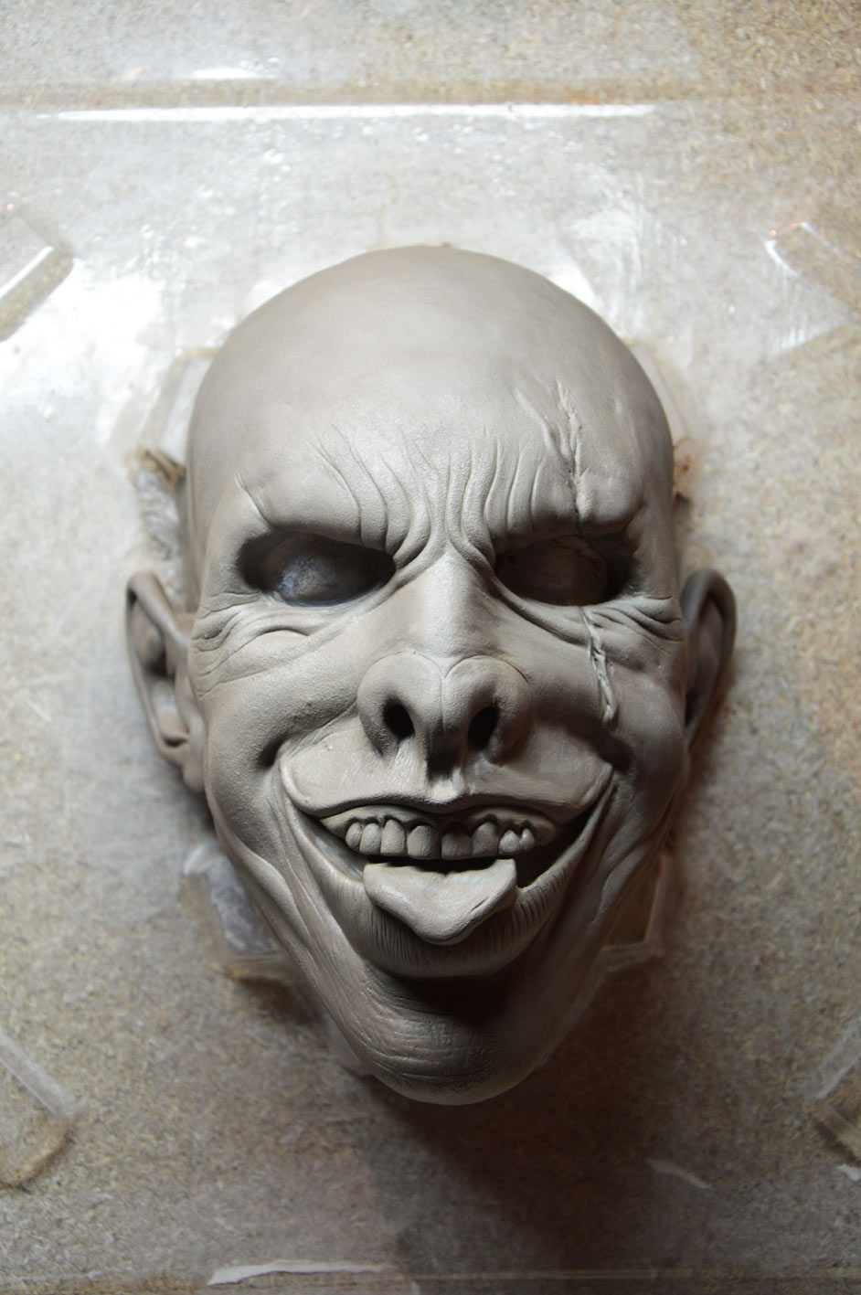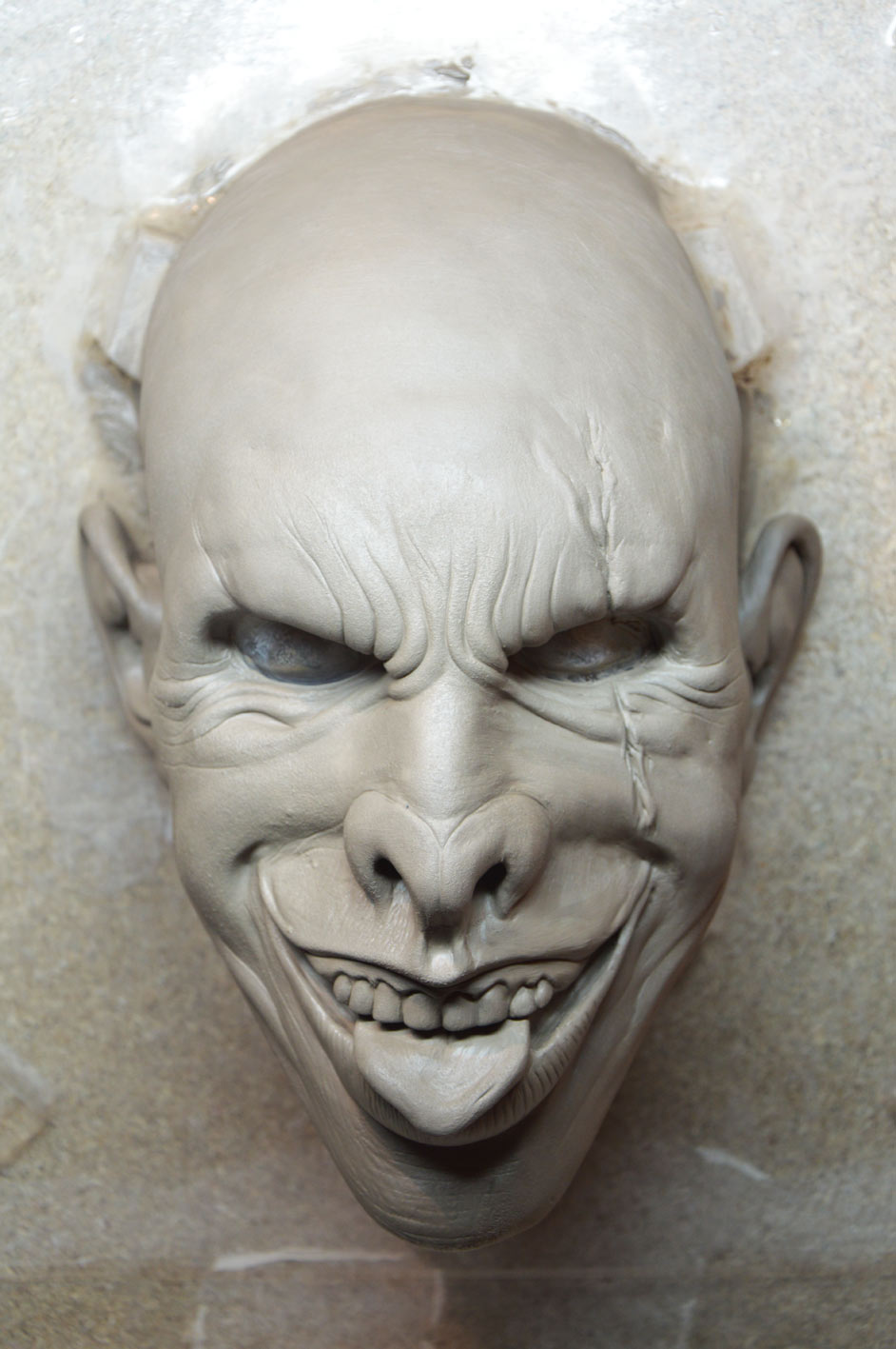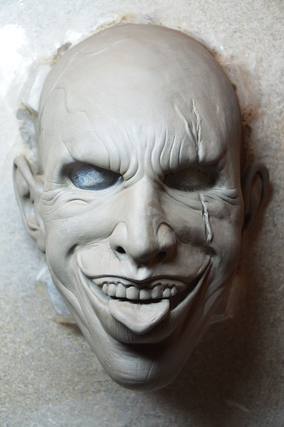 La forme de la bouche me fait penser à celle du Joker dans le Batman de Tim Burton (c'est peut-être ta source d'inspiration ?). Les oreilles sont très bien faites. Je suis plus réservé sur le nez, dont la forme fait penser à un nez de singe. Pour un clown maléfique , tu devrais peut-être tenter une forme de nez ronde plus classique, quitte à jouer sur les textures du nez rouge pour qu'elles deviennent répugnantes ;)
