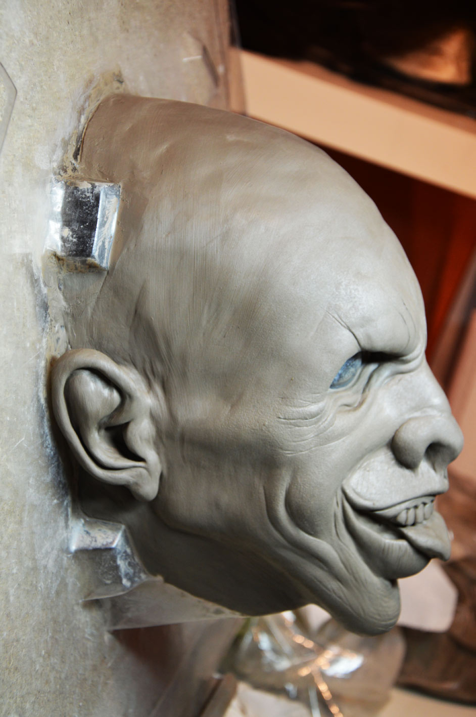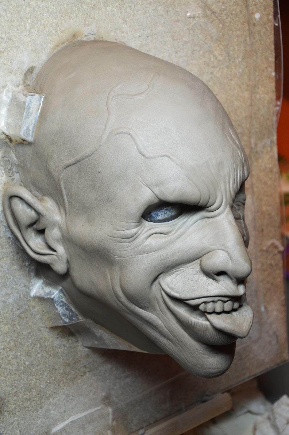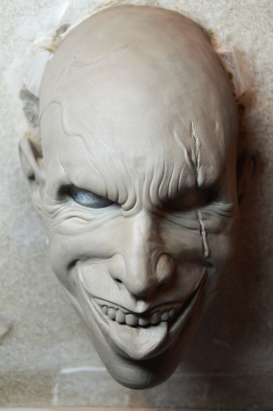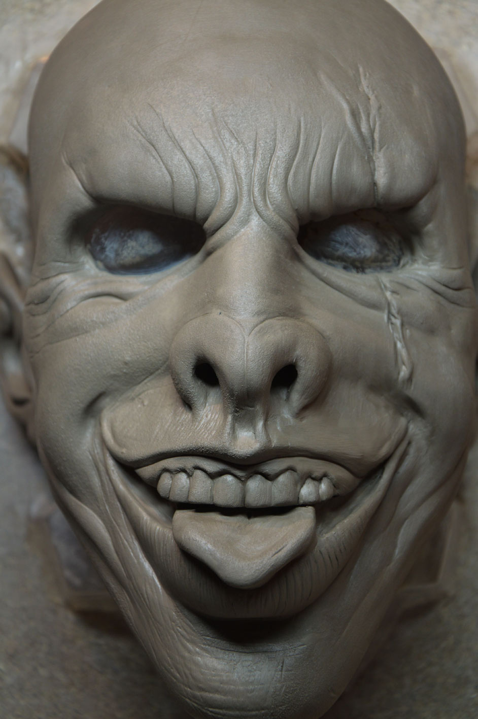La forme de la bouche me fait penser à celle du Joker dans le Batman de Tim Burton (c'est peut-être ta source d'inspiration ?). Les oreilles sont très bien faites. Je suis plus réservé sur le nez, dont la forme fait penser à un nez de singe. Pour un clown maléfique , tu devrais peut-être tenter une forme de nez ronde plus classique, quitte à jouer sur les textures du nez rouge pour qu'elles deviennent répugnantes ;)