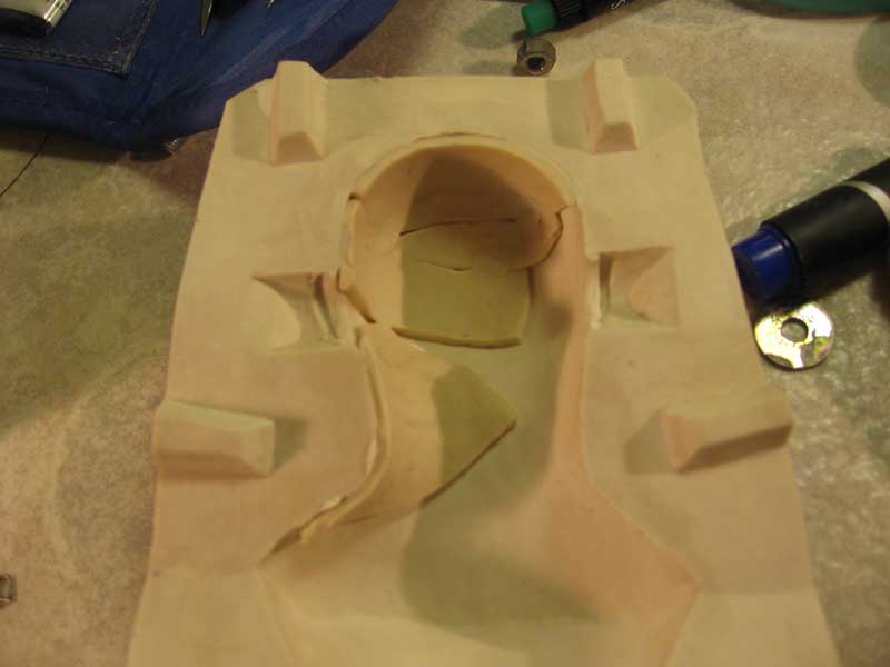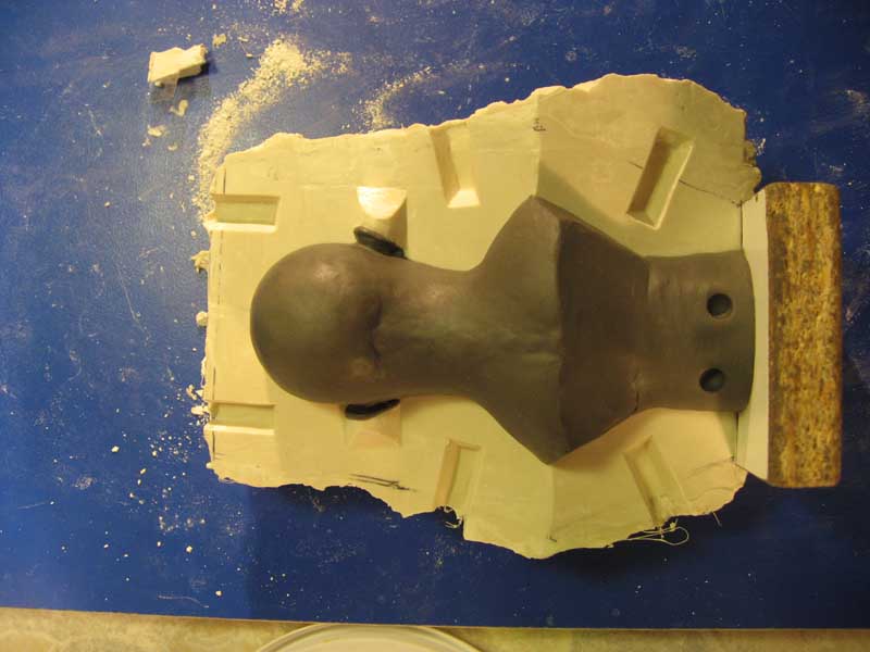 Avec quelque piliers pour maintenir, des clés (carrées c'est mieux) et le plan de joint des oreilles en plastiline (la même, non teintée, parfaite pour le moulage à part quant le model est du même matériau...)
