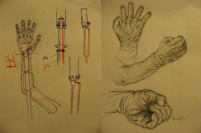 Il me reste à finir la forme du dos de la main sur la petite plaque en métal qui referme le tout et à réaranger 2 ou 3 détails pour gagner en fluidité ainsi que retendre les ressorts qui vont avoir besoin de force une fois qu'il y aura la peau.