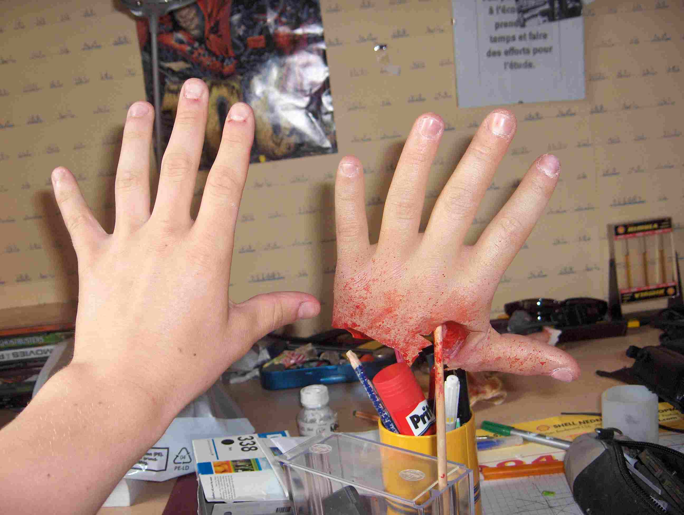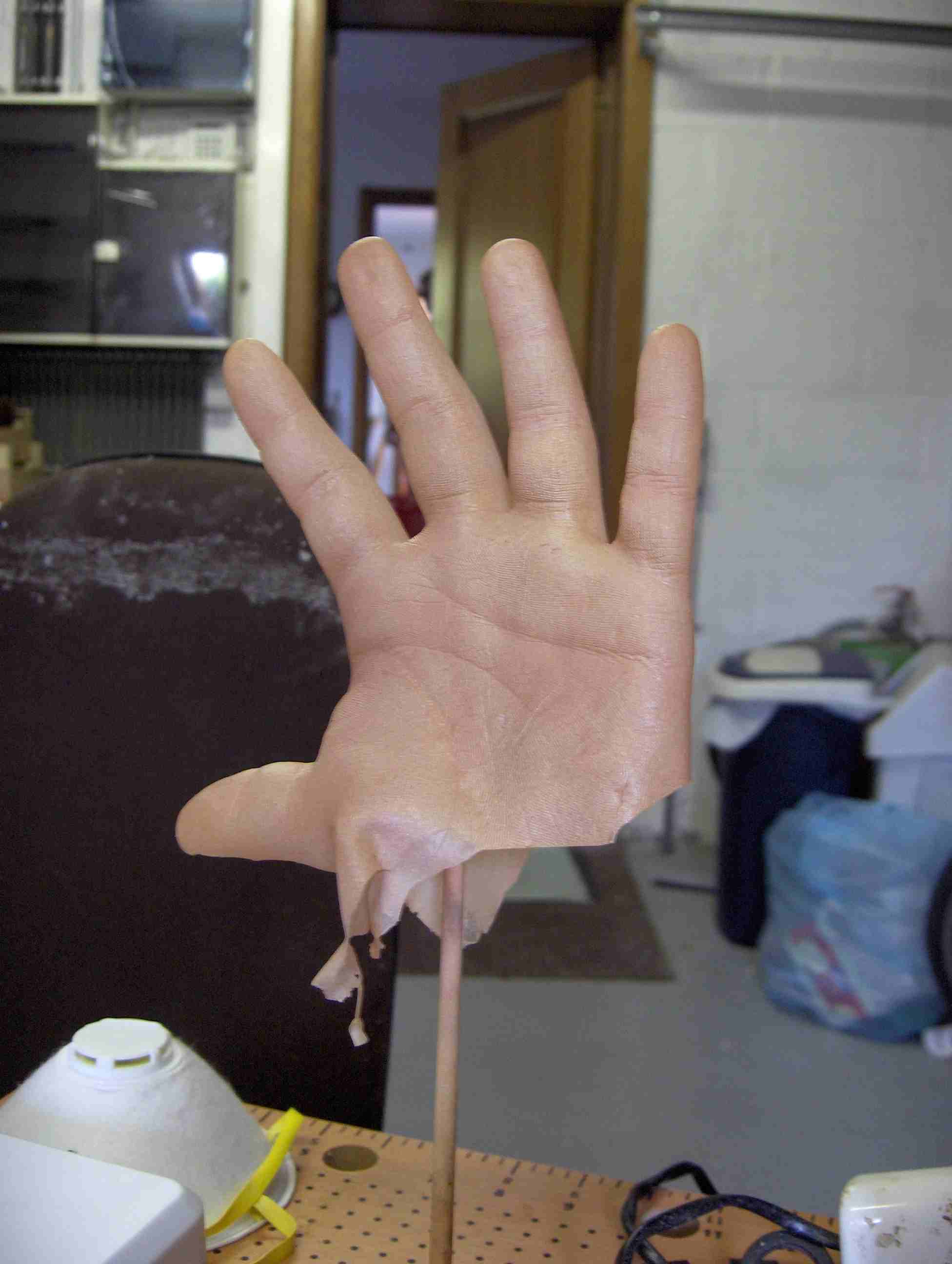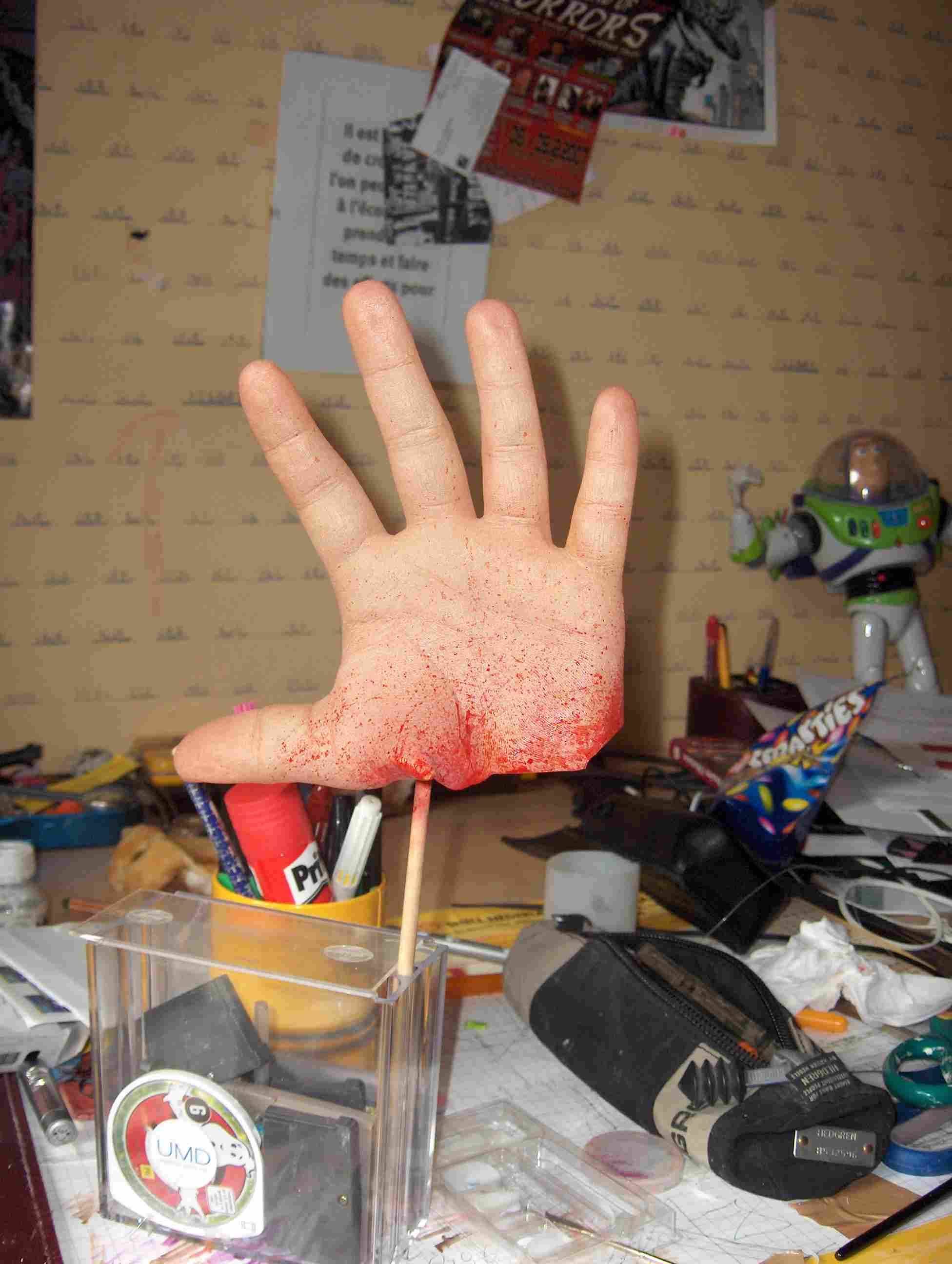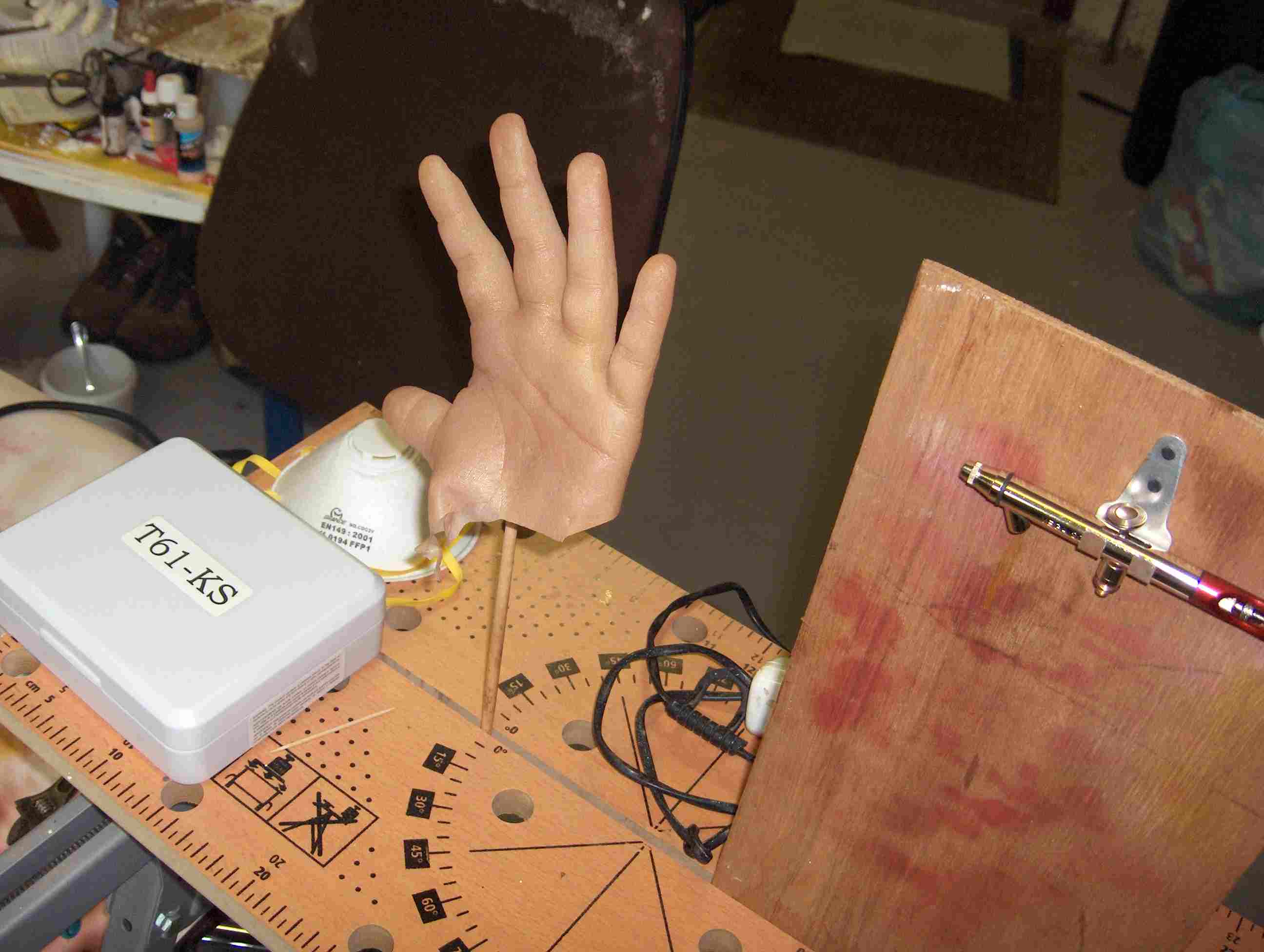 Voila les photos d'une main que j'ai moulée (la mienne) en alginate et tirée directement avec un fond de silicone qu'il me restait (d'ou le manque de l'autre partie de la main ). Bref , c'était surtout pour m' entrainer a peindre avec mon nouveau aéro le vega 2000 :mrgreen: la peinture étant presque finie, je poste déja quelques photos.