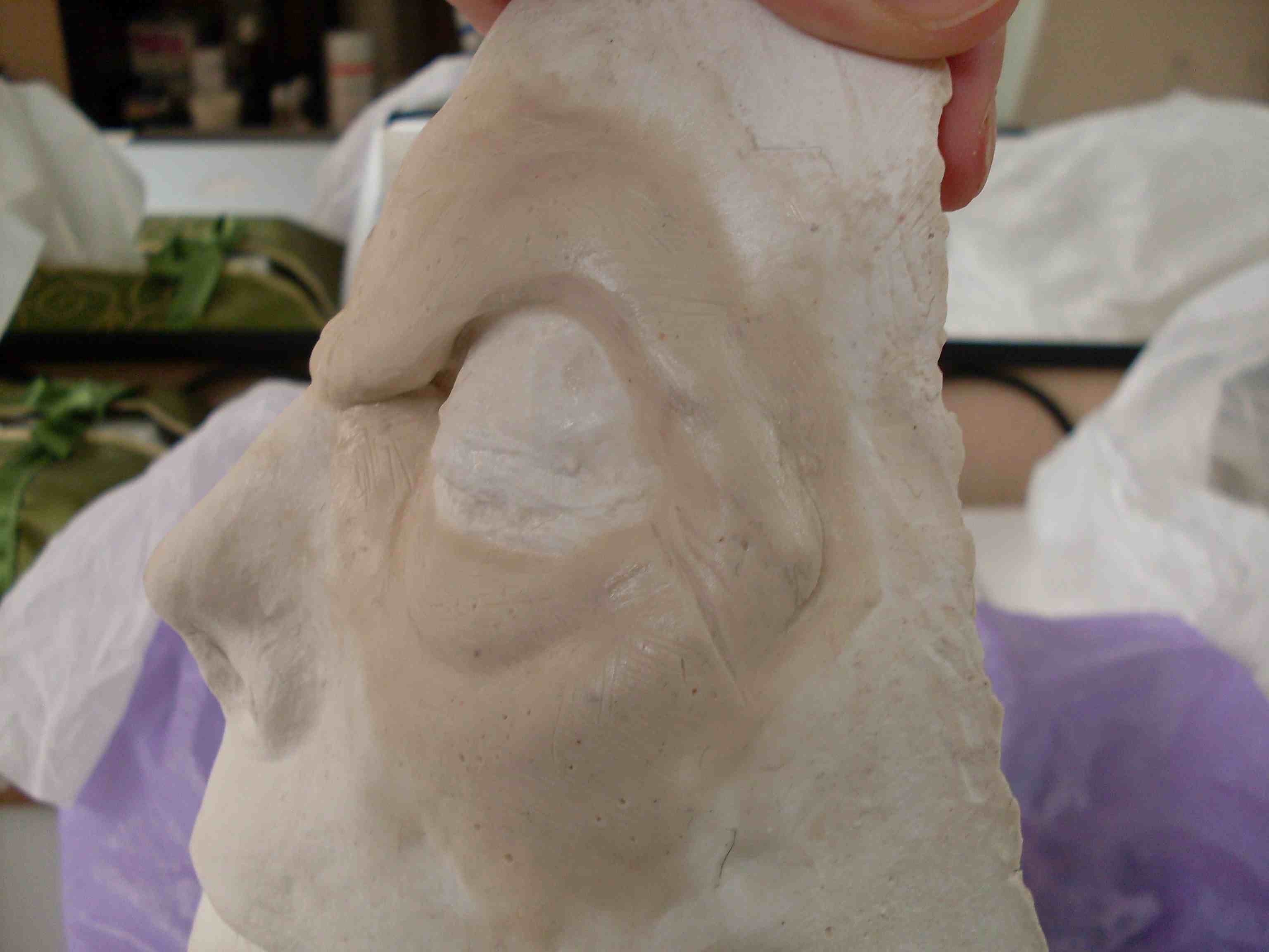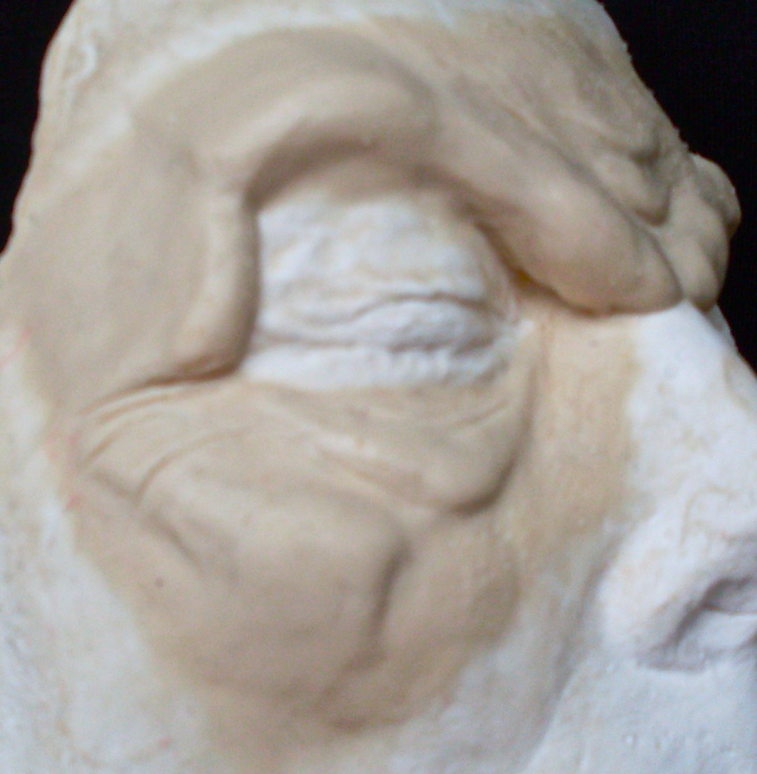 Voici la sculpture retouchée. Pour les poches je me suis aidée de photos de visages réels.