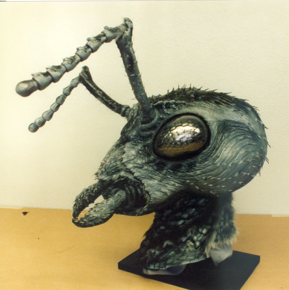 Bon d'accord, c'est une fourmi! Mais ça peut te donner une bonne direction artistique et t'indiquer comment envisager et sculpter une tête d'insecte sur un homme, les mandibules, les antennes etc... Ce masque est issu du film "Matinee" (Panique sur Florida Beach en VF :roll:) de Joe Dante et de l'atelier de Rick Baker (ici, sculpture de l'excellent Jim Mc Pherson) Bon courage!