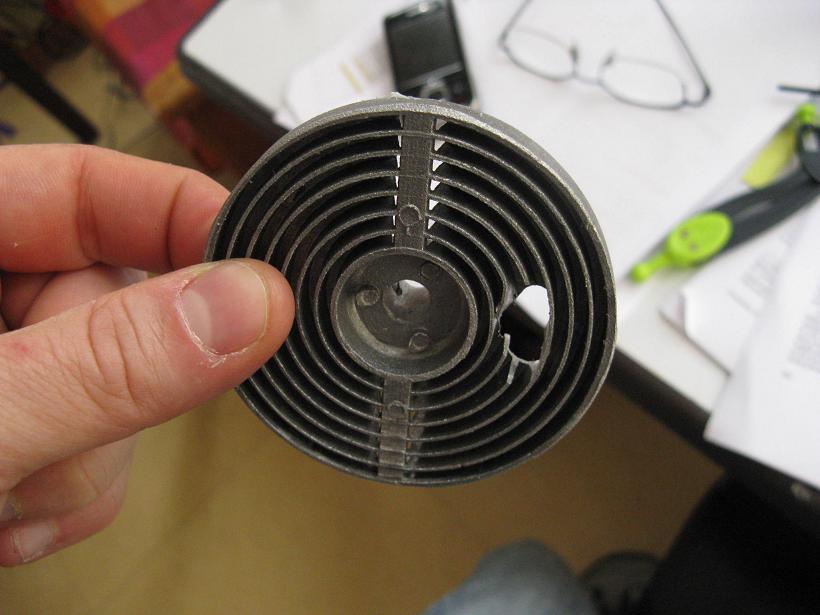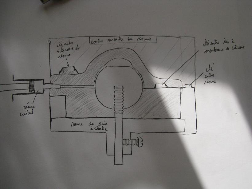 -plutot qu'un évent, je verrai mieux des rigoles que tu peux tailler dans la surface du silicone, perpendiculaires à l'oeil, ça limiterait la surface à retoucher (ça reste à tester).