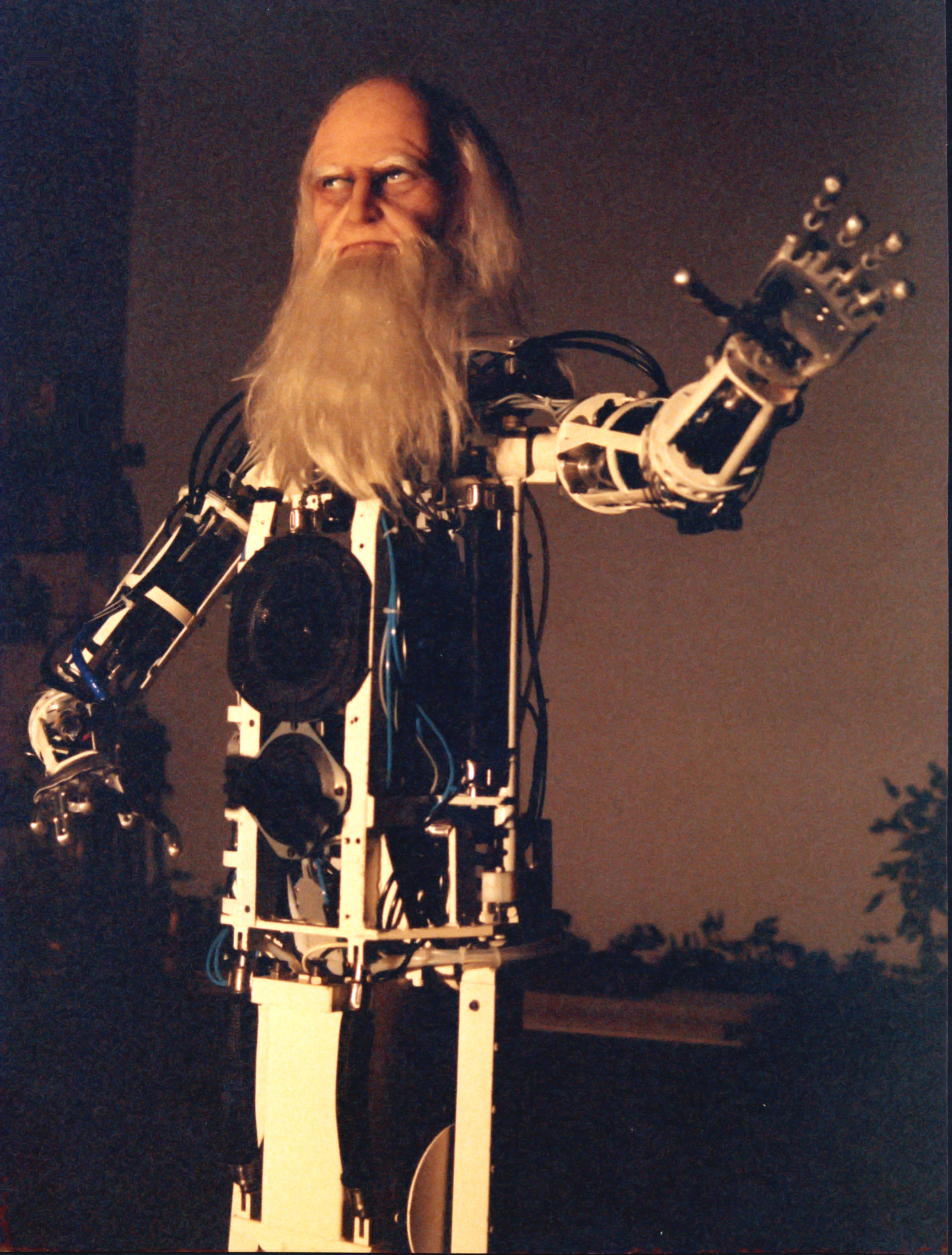 BILL a écrit:Je pense que le matériau le plus durable et le plus réaliste à utiliser pour créer pour un visage d'animatronique est le silicone. C''est la solution que j'avais choisi pour fabriquer celui d'un robot de Léonard de Vinci pour le défunt parc de Mirapolis, à la fin des années 80. En voici une photo: