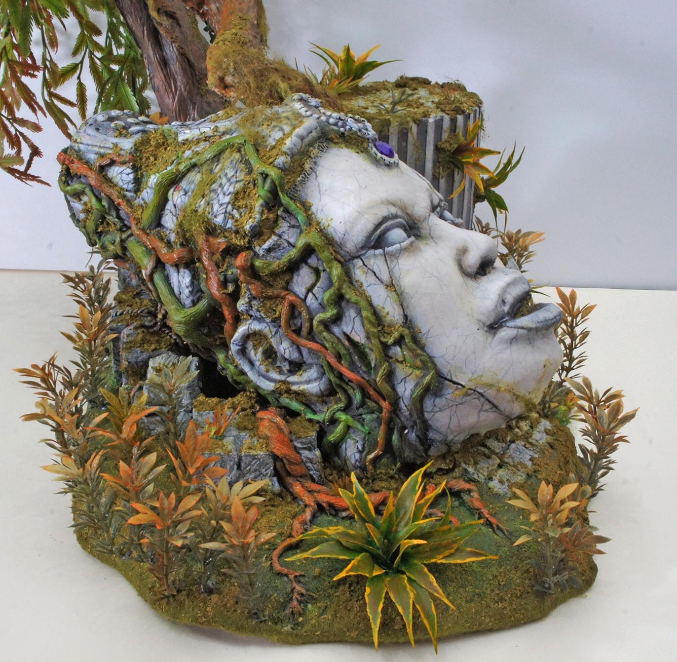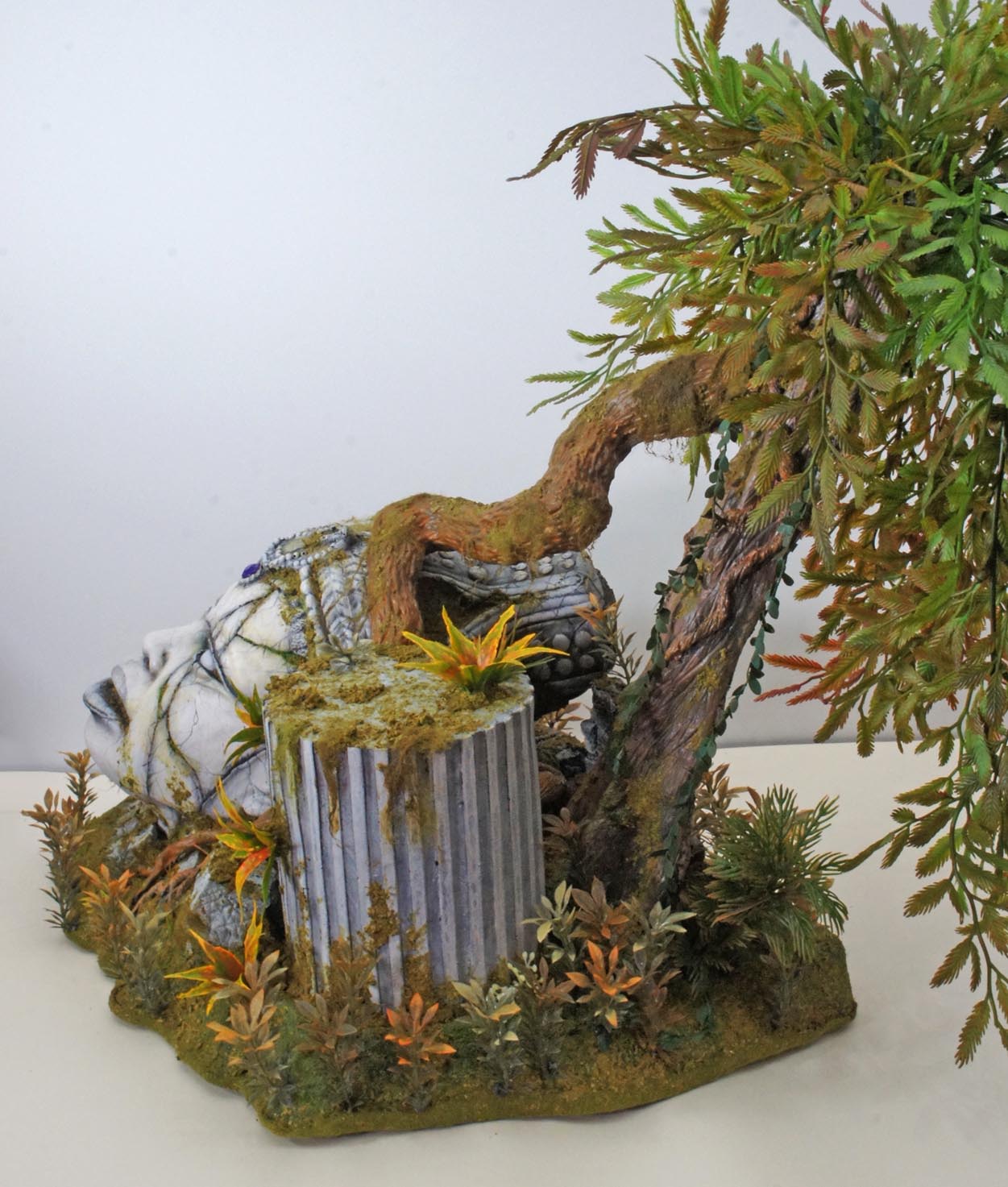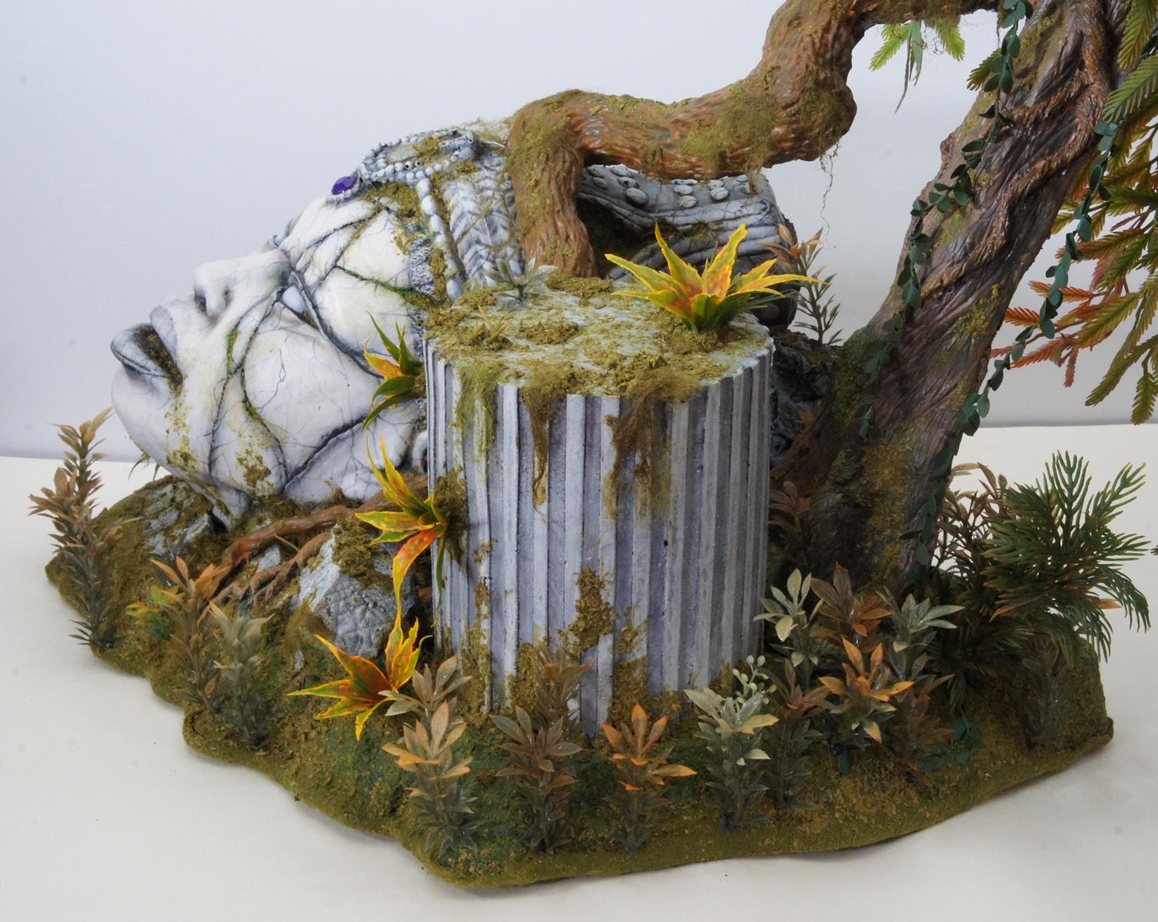 Ce mini-décor de labo a été fabriqué en quelques heures, avec ce que j'avais sous la main : une boîte de carton, des gobelets jetables, des morceaux de plastique récupérés, de couvercles de boîtes diverses. Ça a "fait la blague" en permettant de créer une petite ambiance autour des deux figurines, et comme la photo était de taille moyenne dans la mise en page, le manque de détails n'était pas trop choquant.