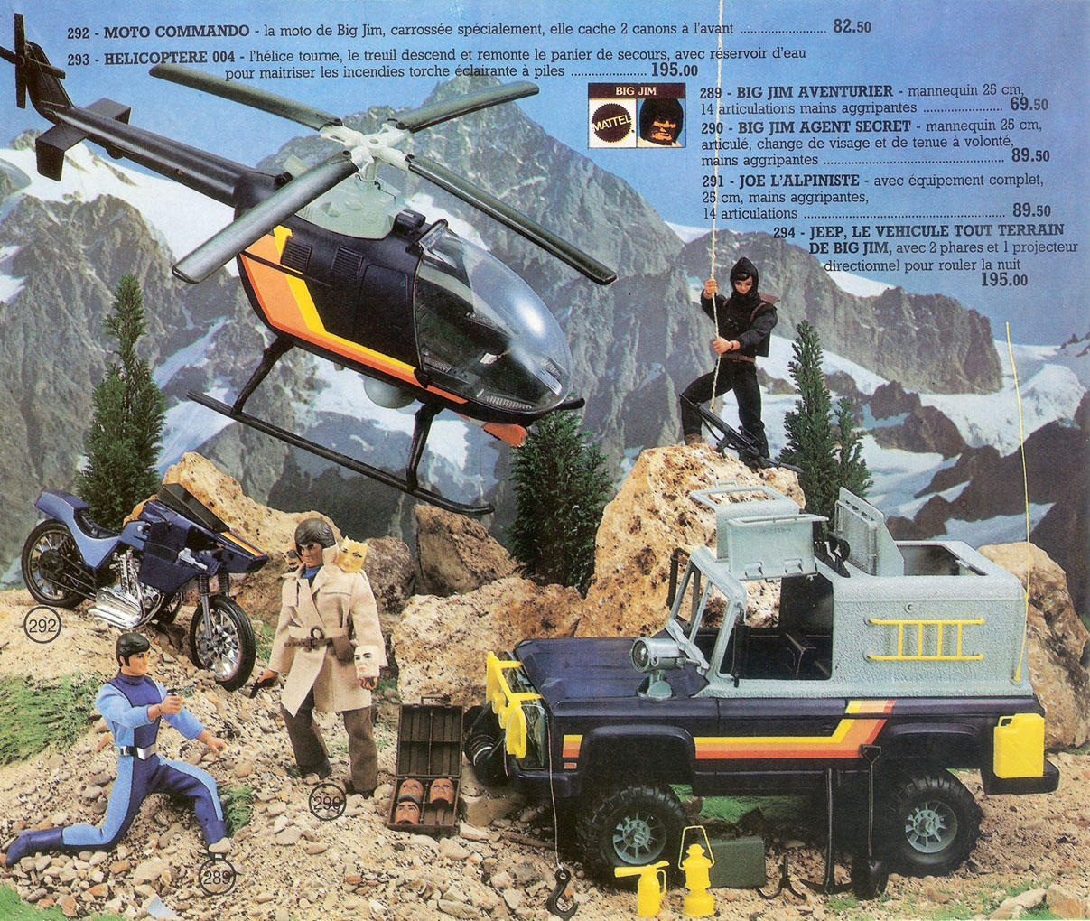 Dernièrement, je me suis amusé à finir et patiner ce mini décor pour en faire cadeau à quelqu'un qui aime beaucoup la gamme Spy de Big Jim. J'en ai profité pour prendre une autre photo des personnages dedans, et si un jour, on réimprime et réactualise le livre, cette nouvelle image remplacera l'ancienne.
