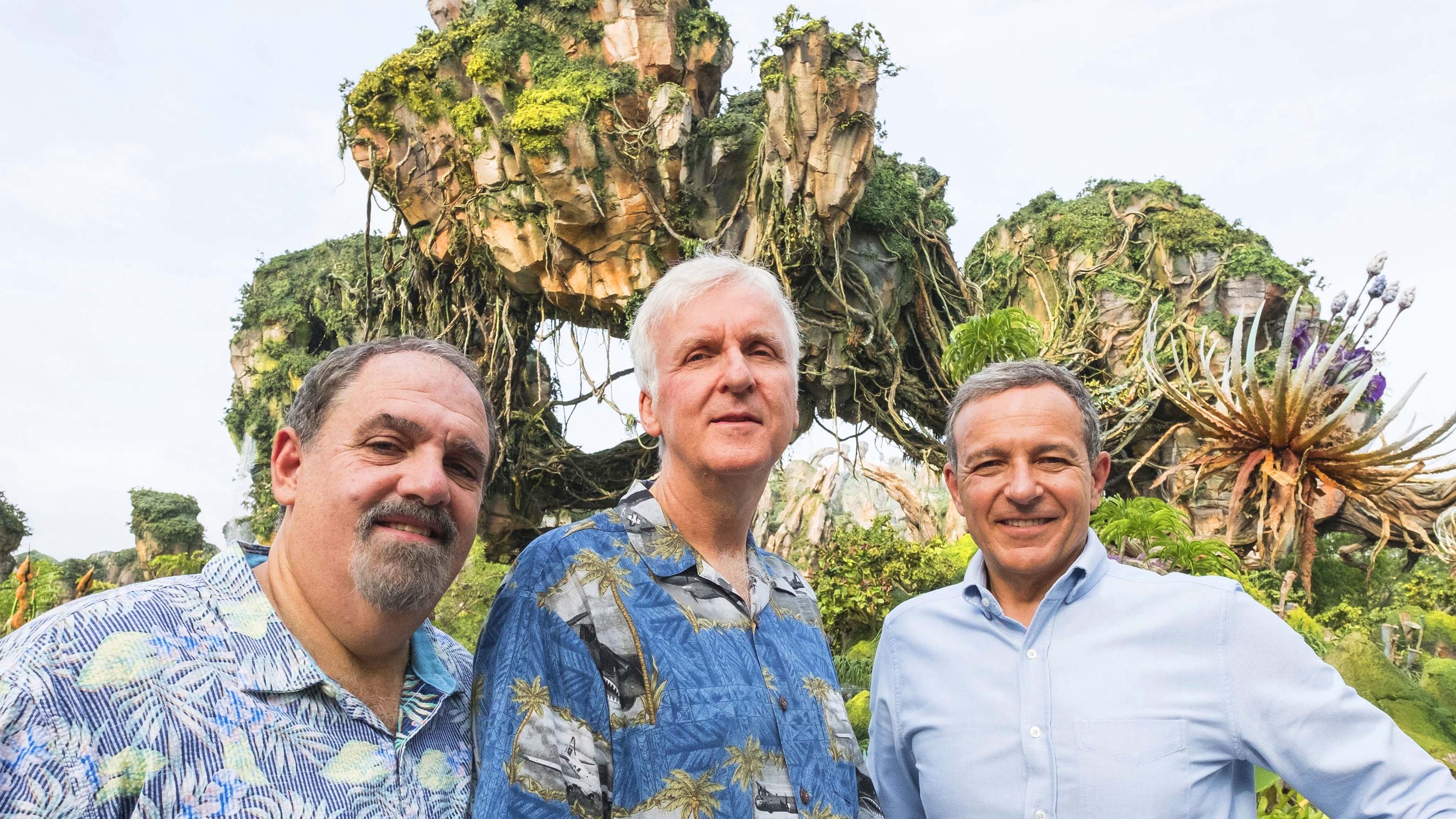 Jon Landau, James Cameron Bob Iger, PDG de Disney devant les décors de Pandora, The World of Avatar.jpg