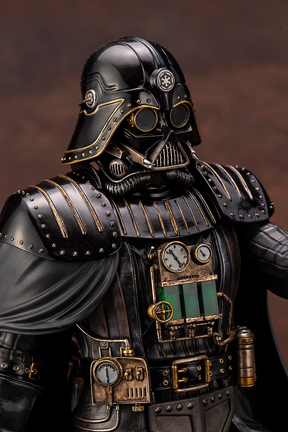 "Standing triumphantly, Darth Vader™ takes on a uniquely steampunk appearance in the work entitled “Industrial Empire”. World-renowned artist Adi Granov created this exclusive illustration in collaboration with Lucasfilm just for Kotobukiya! Reimagined in this iconic style, the Dark Lord of the Sith™ appears in a forbidding pose, arm outstretched and encased in a battle-worn suit embellished with metal plating, rivets and various pressure gauges.