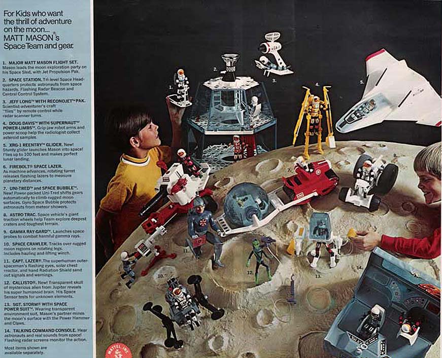 Mattel a constamment recyclé ses idées et ses accessoires d'une gamme à l'autre, et l'ancêtre de ce personnage vient de la superbe gamme du Major Matt Mason créée à la fin des années 60 dans la période de la course à l'espace entre les américains et les russes.