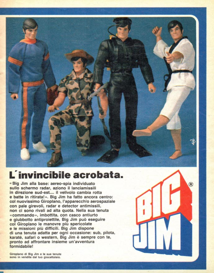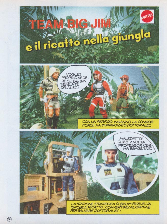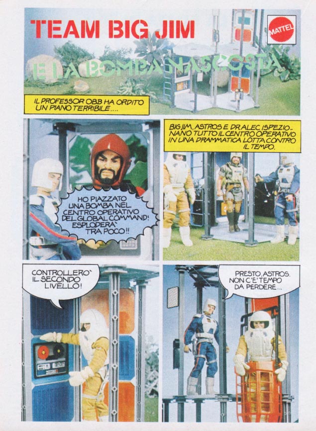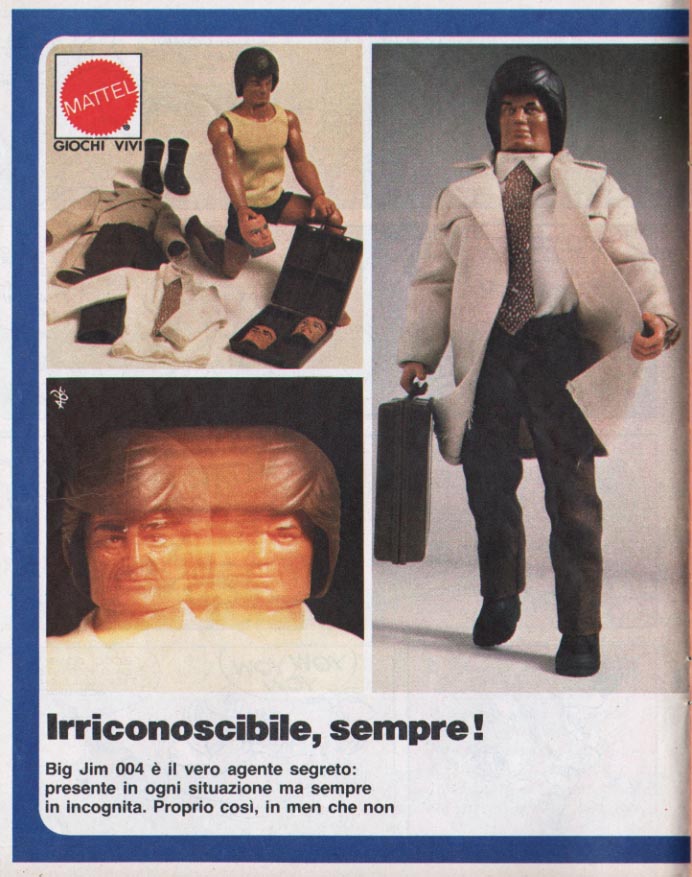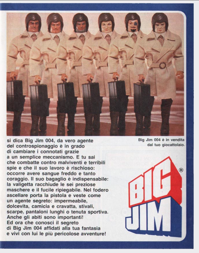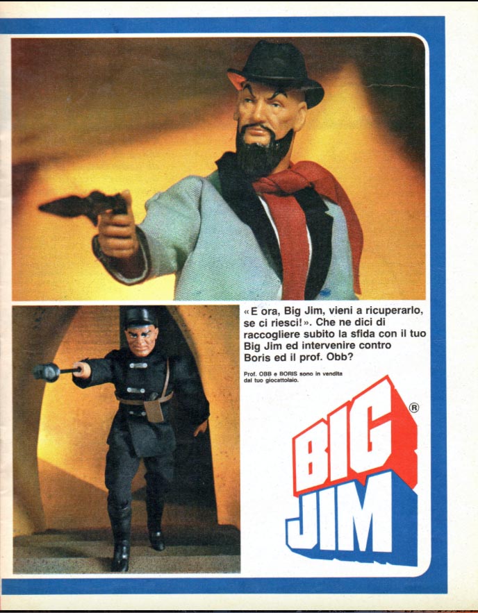 Pub iconique aujourd'hui, avec la présentation de la fameuse mallette contenant les masques de Big Jim 004, champion de la métamorphose, et une aventure en BD avec un Professeur Obb dupé par plus malin que lui !