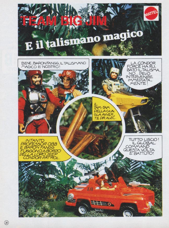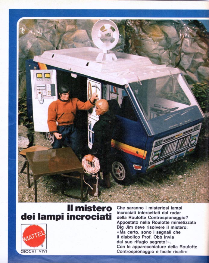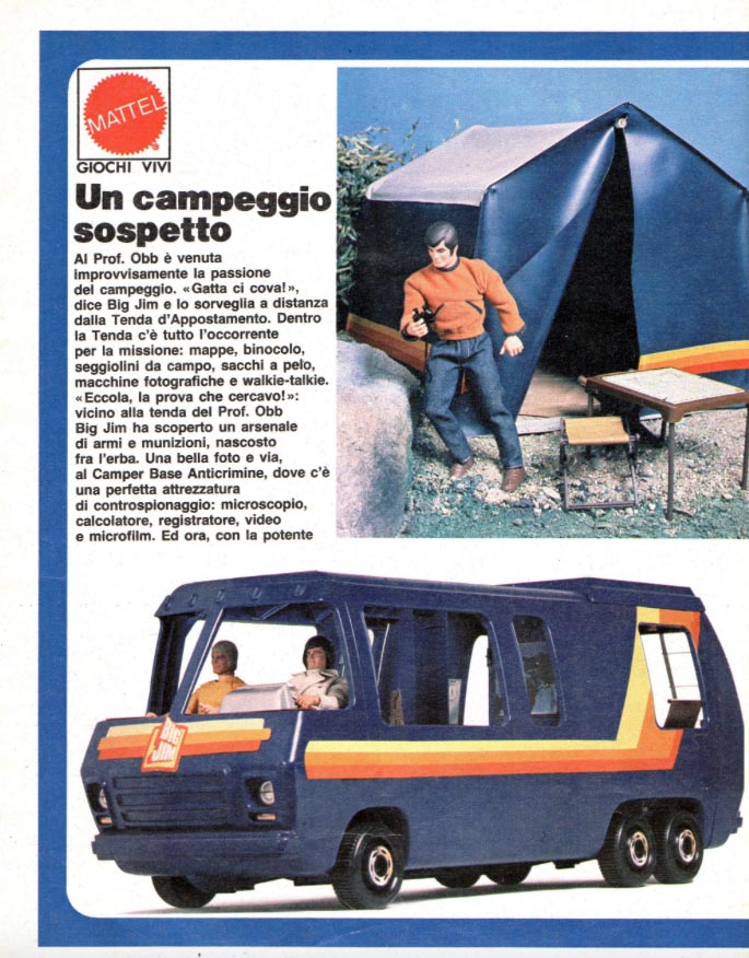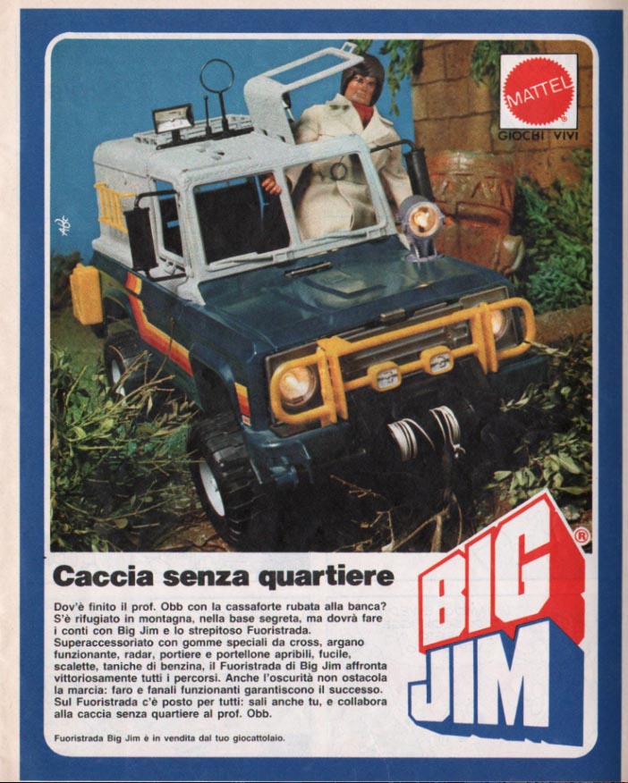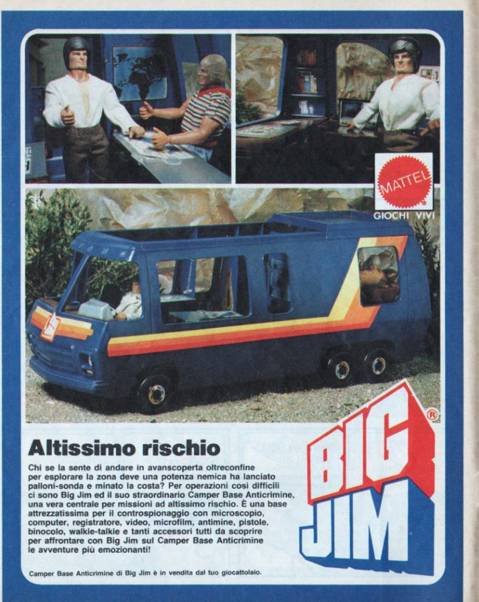 Pub iconique aujourd'hui, avec la présentation de la fameuse mallette contenant les masques de Big Jim 004, champion de la métamorphose, et une aventure en BD avec un Professeur Obb dupé par plus malin que lui !