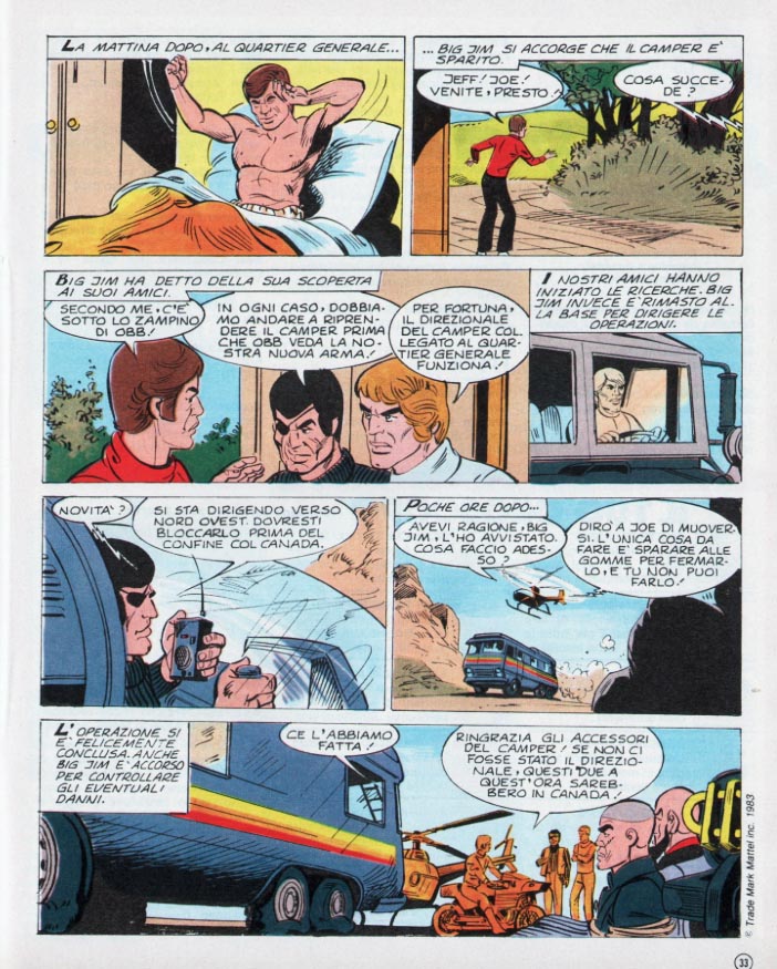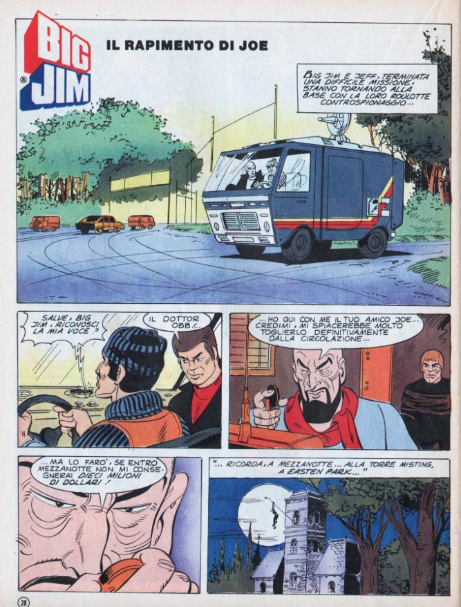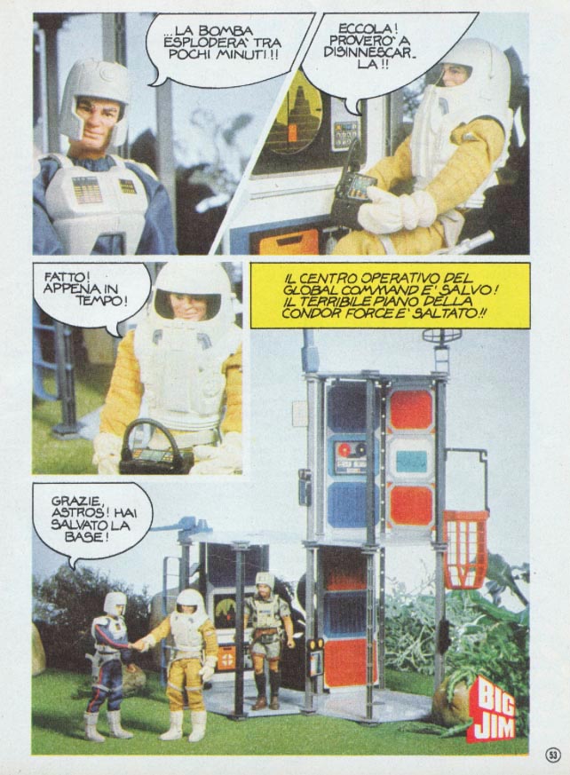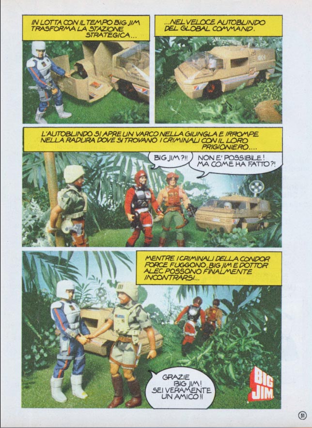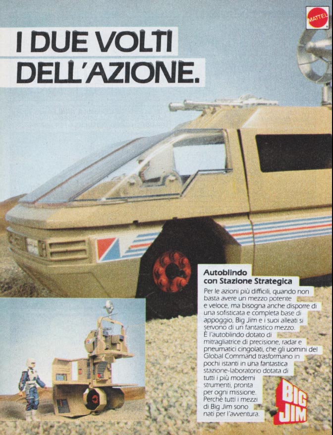 Pour entamer la semaine, voici une pub et une aventure en roman-photo dédiées au véhicule blindé transformable en base itinérante des héros de Global Command. Grâce à lui, Big Jim va pouvoir secourir le Docteur Alec, capturé par le professeur Obb et le Baron Fangg !
