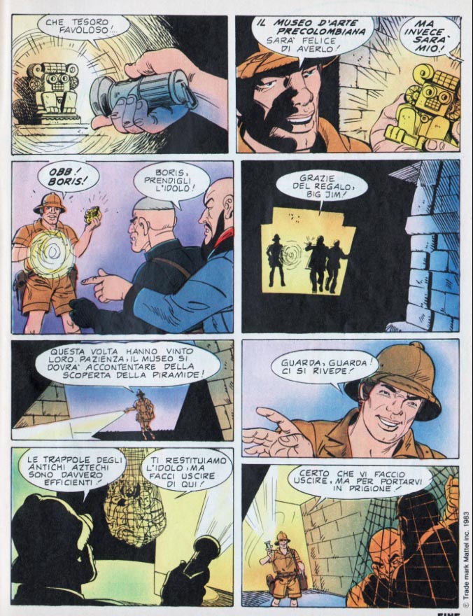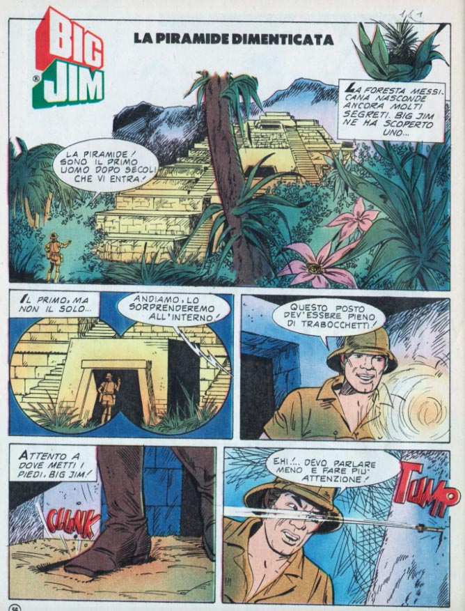 En cette journée de fête nationale, que diriez-vous de partir à la recherche d'un trésor avec Big Jim ? Mais d'abord, il faut s'équiper avec une tenue d'aventure, comme dans la 1ère pub, puis choisir un bon véhicule (2ème pub) pour s'approcher d'un temple aztèque perdu au coeur de la jungle, et enfin explorer ses couloirs remplis de pièges, comme dans la BD que voici ! Enjoy ! :D