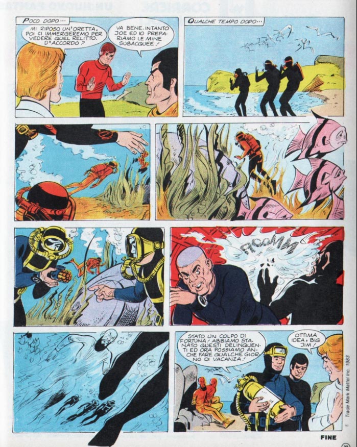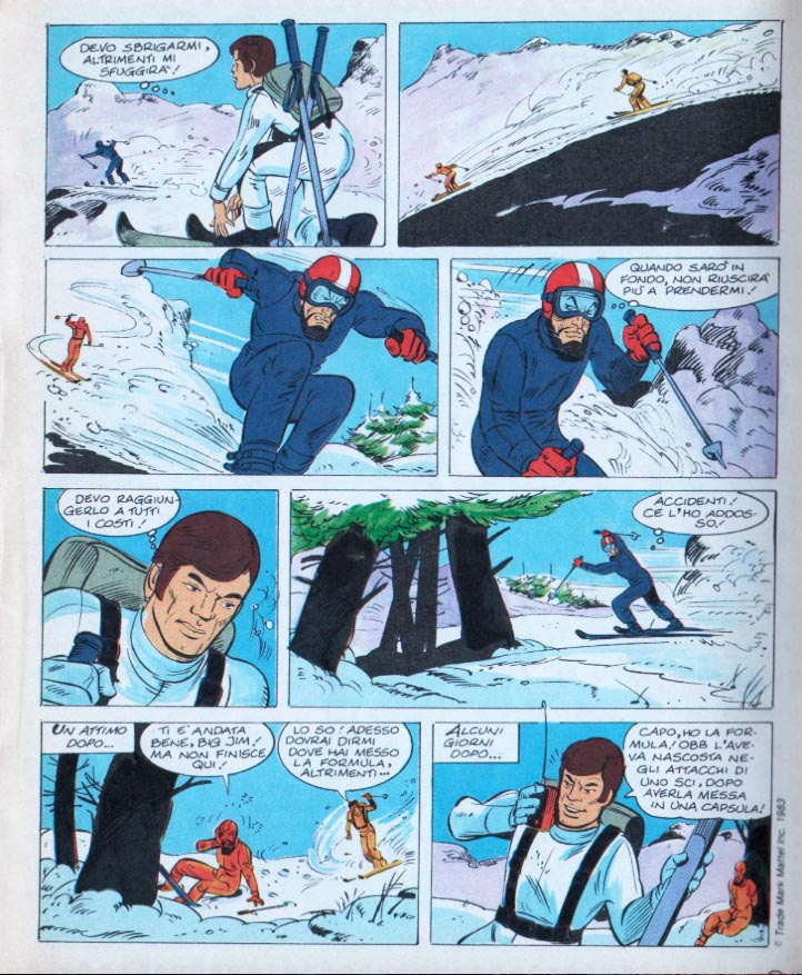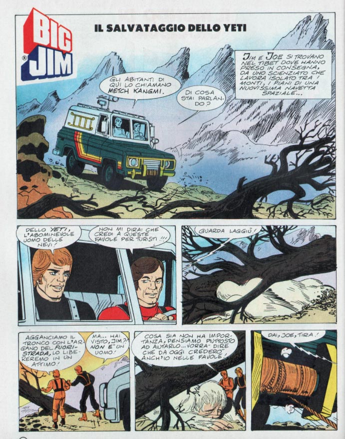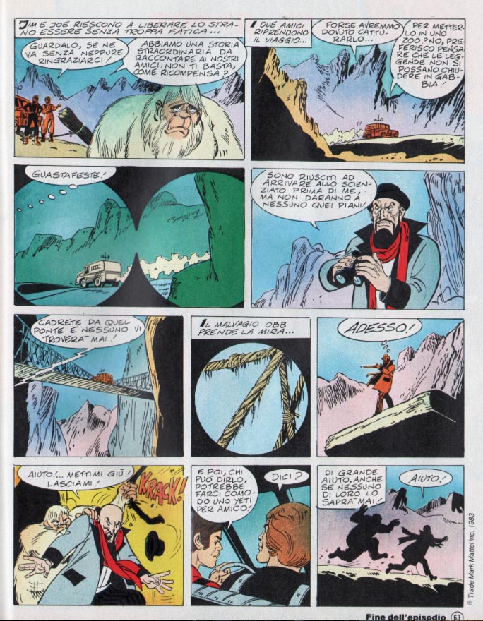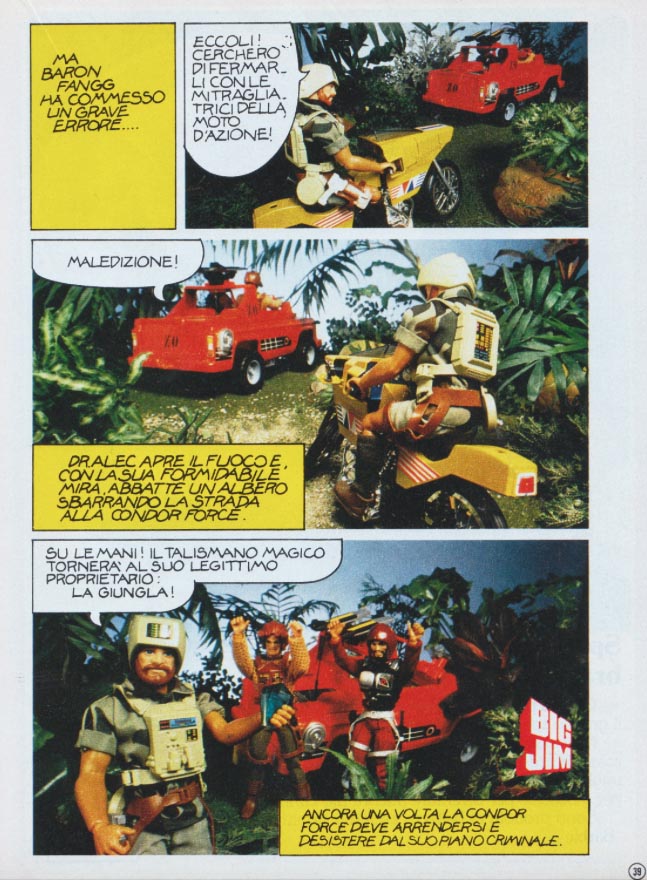 C'est l'hélicoptère de la gamme spy qui est mis en avant dans cette pub et cette aventure en BD qui se déroulent toutes les deux en haute montagne. On y apprend au début que le perfide Professeur Obb s'est installé dans un refuge pour mettre au point "une formule qui permet de rapetisser le corps humain". A la taille d'un Big Jim peut-être ? :wink: :lol: