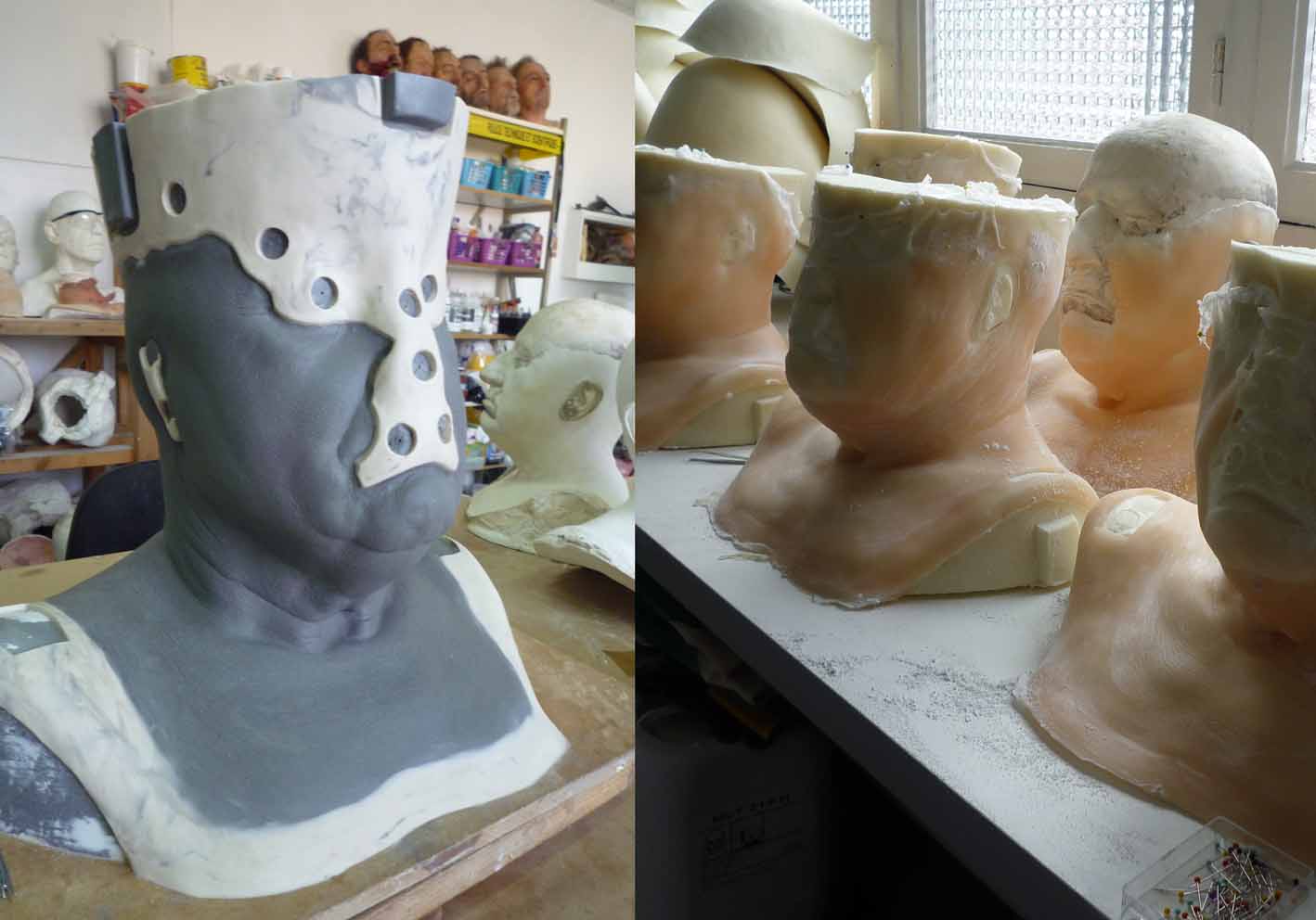 à Tromaboy: La peinture est de moi :mrgreen: Sinon oui, le gel de silicone est encapsulé. La plupart du temps avec du Bald Cap dilué à l'acetone (pour le Baldiez, et à l'alcool isopropyle pour le Super Baldiez) et passé au pistolet (en gros, deux / trois couches, suivant la dilution). Le moule en epoxy est refermé, puis le gel de silicone injecté. Quelques autres fois, quand les raccords ne sont pas déterminants, j'utilise plutôt une peau en silicone (A+B, pour le Platsil Gel 10) passée à l'éponge.