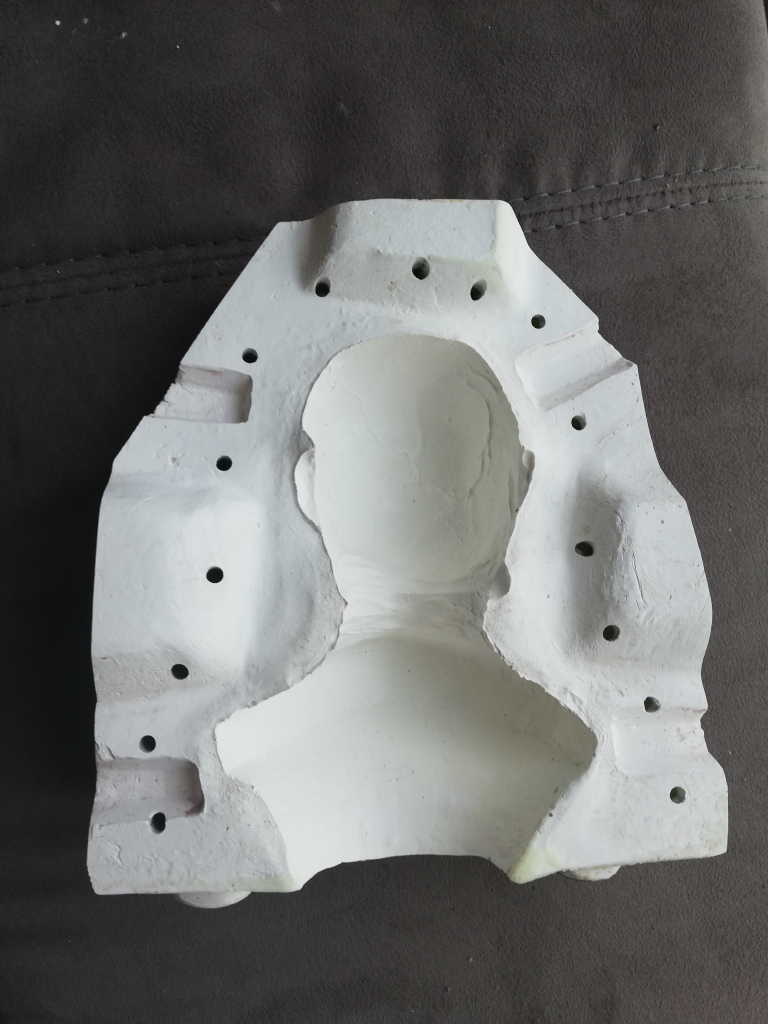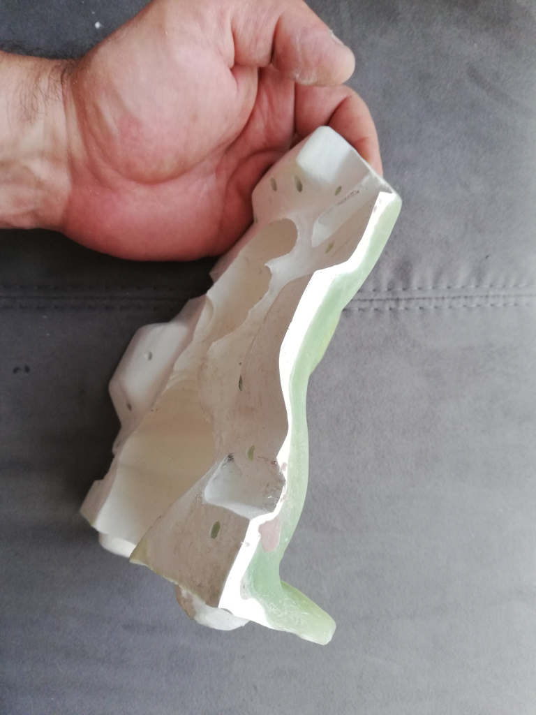 Avec un dremel, j'ai fraisé le plâtre afin de faire un trou de coulée.