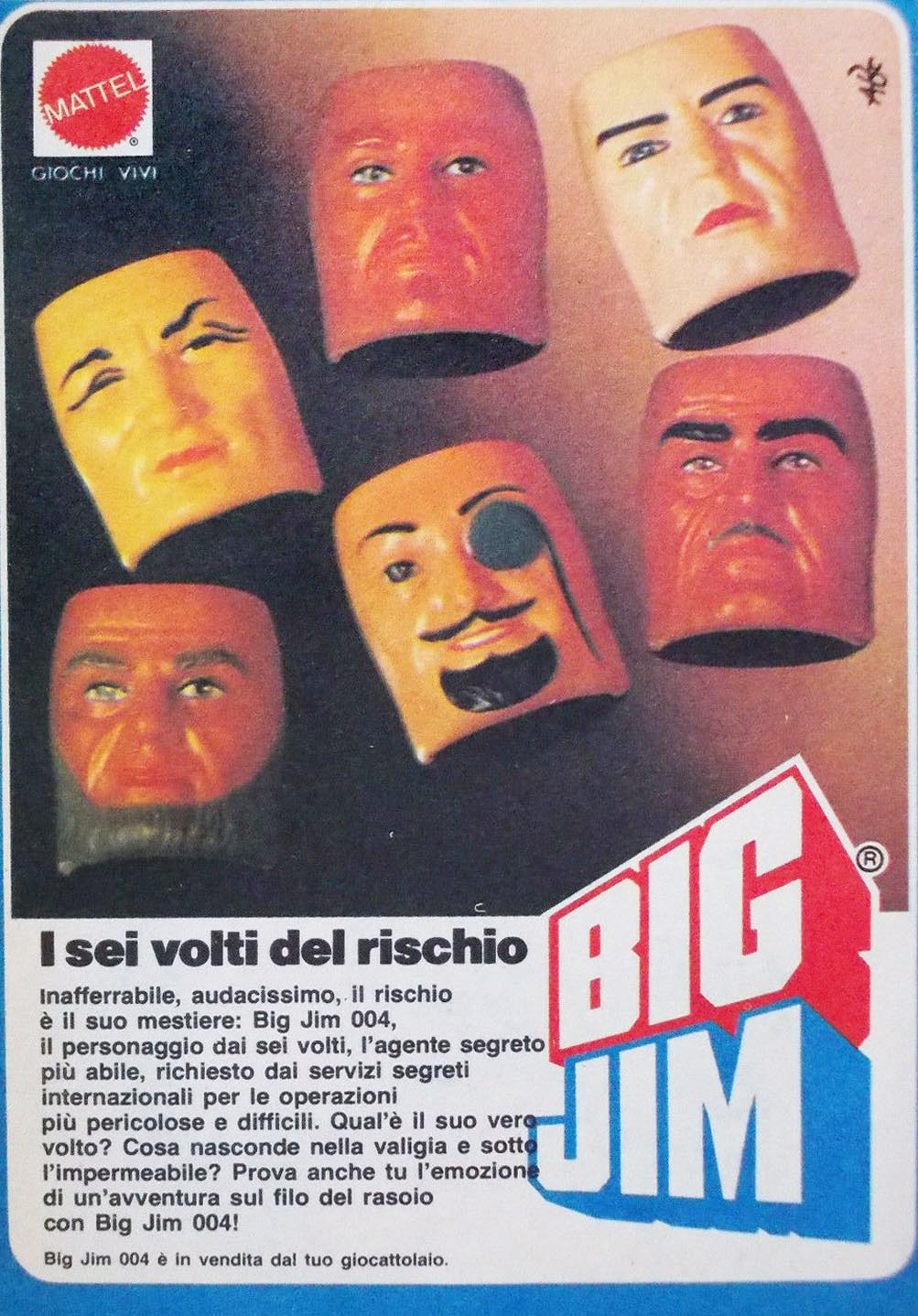 Reprise du travail aujourd'hui également pour Big Jim agent secret 004, avec ces trois publicités italiennes présentant son dons de déguisement et ses fameux masques.