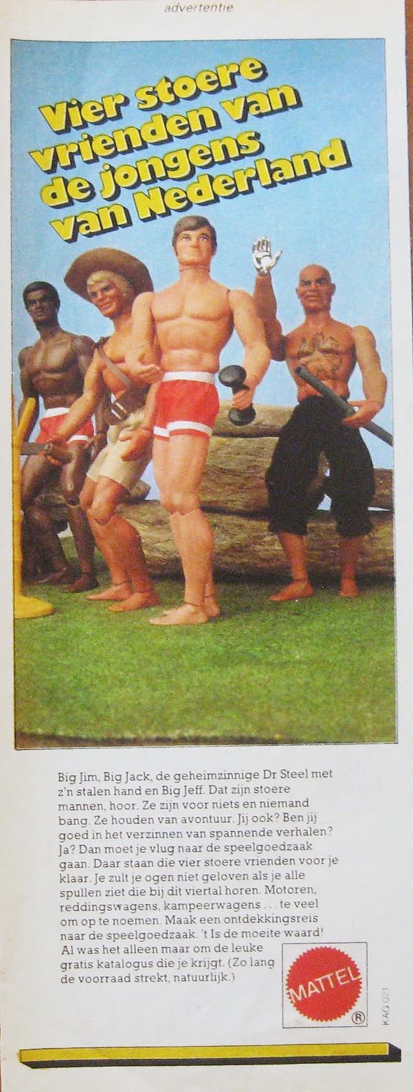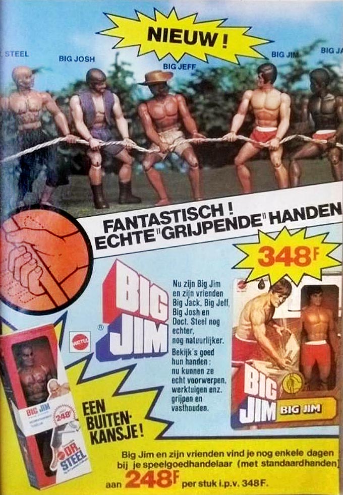 Et puis un peu plus tard, Mattel s'est inspiré du "Kung-Fu Grip" des mains souples et semi-fermées des figurines Action Joe du concurrent Hasbro, pour munir aussi Big Jim et ses amis de cette caractéristique bien utile, comme l'explique avec enthousiasme la 3ème pub !