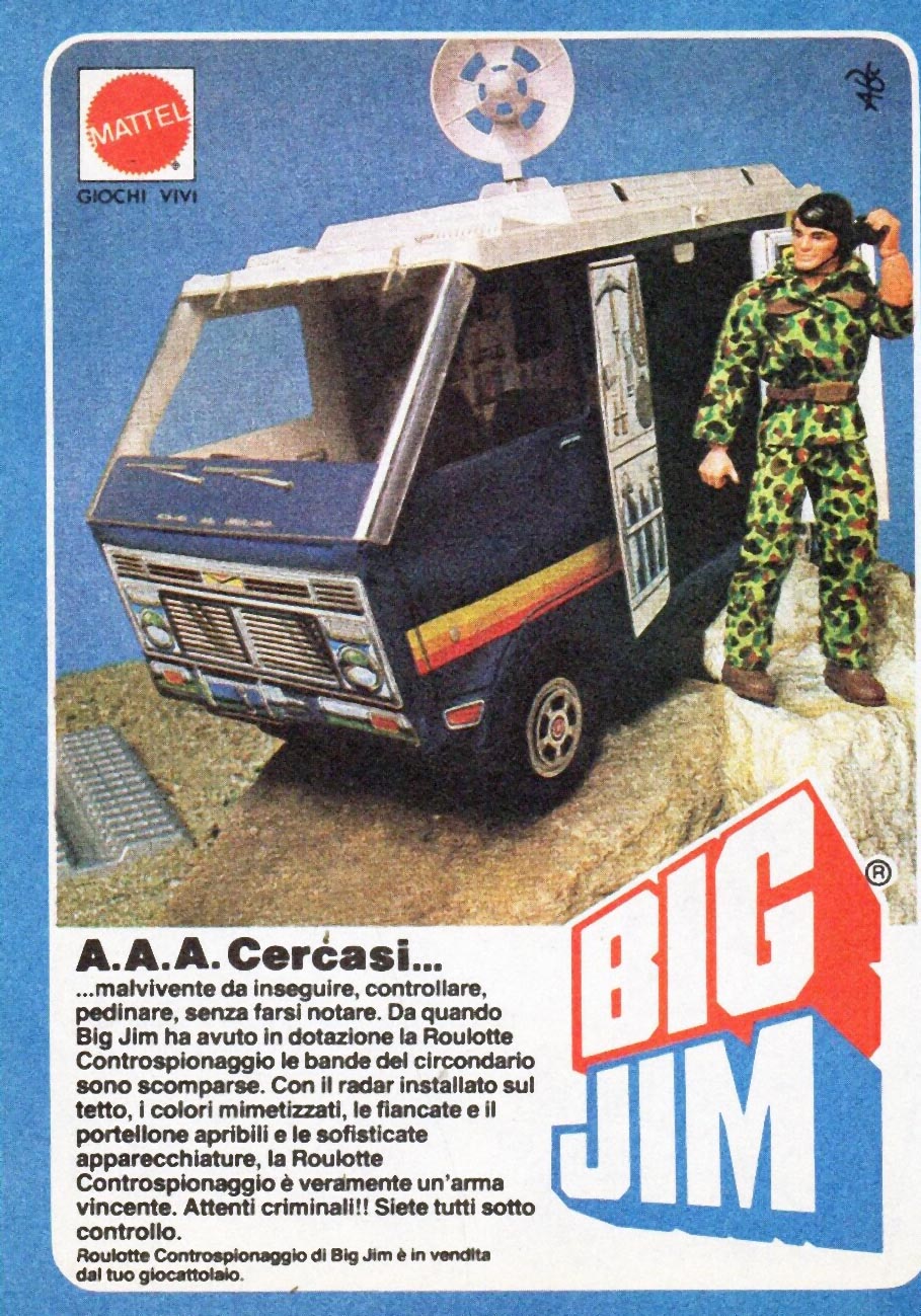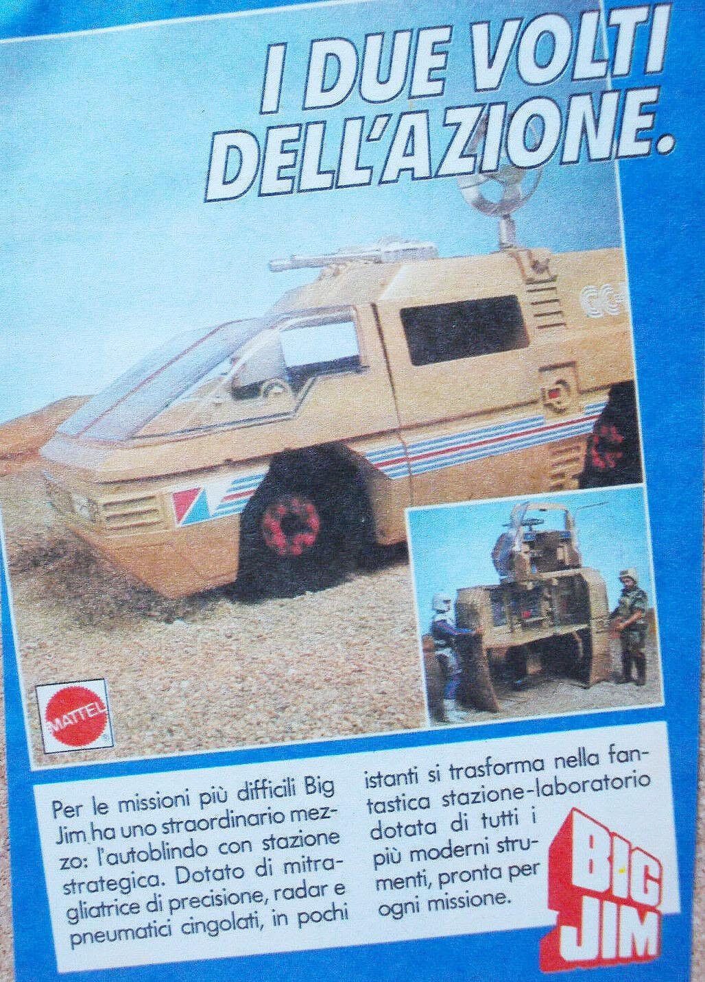 La petite curiosité de la 2ème pub est la présence de la jeep dans sa version beige Safari et non violette / look de la gamme espionnage. L'idée de Mattel Italie était peut-être de se servir de la grande popularité de la gamme agent secret pour promouvoir aussi les accessoires des autres gammes thématiques aventure / exploration.
