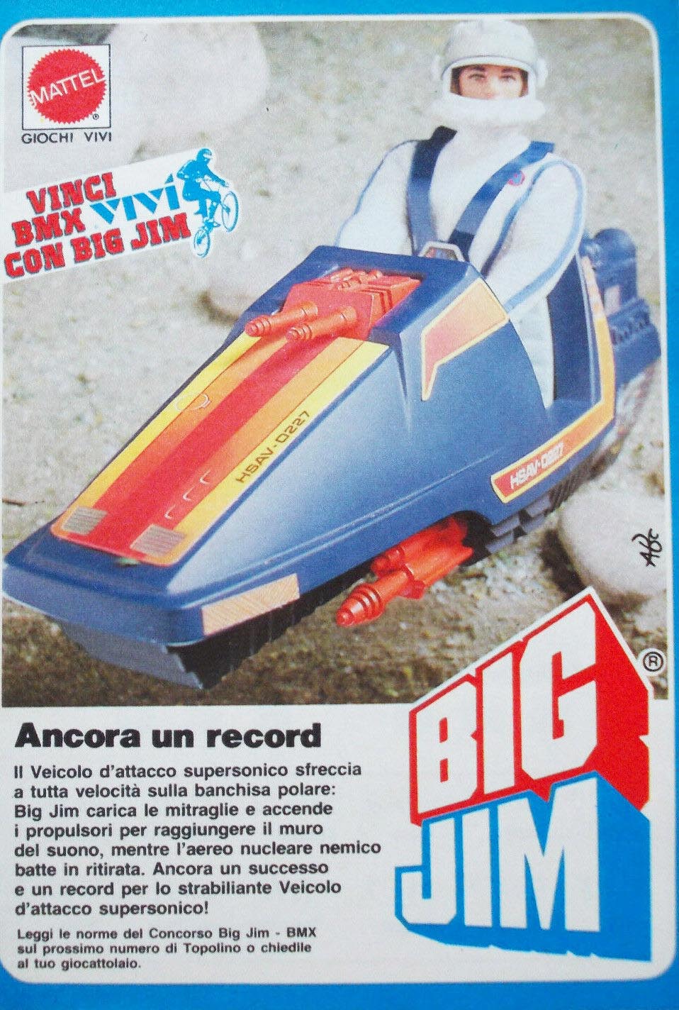 Si la Jeep et l'hélico n'ont pas de gadget supplémentaires par rapport aux autres versions, la moto de Big Jim, elle, est dotée de compartiments latéraux qui s'ouvrent pour révéler des mitraillettes dans la version violette "Spy" et des canons laser dans la version jaune "Espace" :wink: